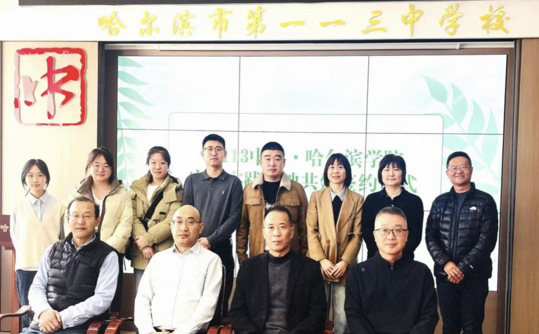 (文/陈鹏)2026年3月10日上午,哈尔滨学院与哈尔滨市第一一三中学教育实习基地签约仪式在哈尔滨市第一一三中学隆重举行。哈尔滨市第一一三中学党支部书记李立新、校长甘泉、副校长石兴盛、副校长孟莹、副校长吴娜,哈尔滨学院教务处副处长郭海龙、人工智能学院副院长宗明魁、数学系教师陈鹏以及哈尔滨学院数学与应用数学专业实习生共同出席本次活动,魔角科技教师刘文亮列席本次活动。