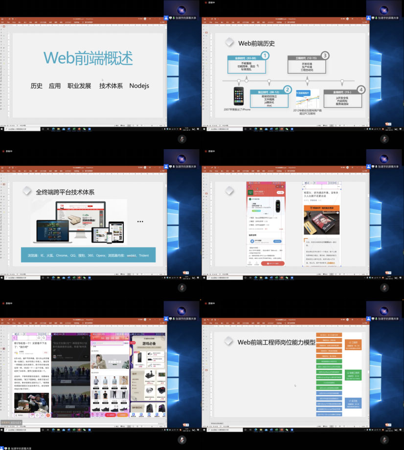 张靖宇老师首先从前端开发简史讲起,为大家讲述了业余时代,独立时代,工程时代和全栈时代,从最初的不被重视、功能简单、混合、标准混乱到如今的js开发全栈、代码同构、服务器渲染。通过近半个小时的讲解,大家了解到js已经不再是单纯的脚本语言,而是编程语言、脱离浏览器,可使用一切系统资源、基于Nodejs我们可以更加智能的管理项目、Nodejs已经不单单是个js运行环境。张靖宇老师告诉同学们该如何的不断提升自我价值,如何良好的利用大学的时光,努力学习,在毕业的时候,有更多的资本去斩获自己满意的工作,鼓励同学们让同学们成为5G应用创新复合型人才。最后,张靖宇老师又针对前端开发相应职业的工资待遇以及前景发展为同学们做了介绍并分享了前端学习路线,增强了同学们的专业系统知识和创造性。