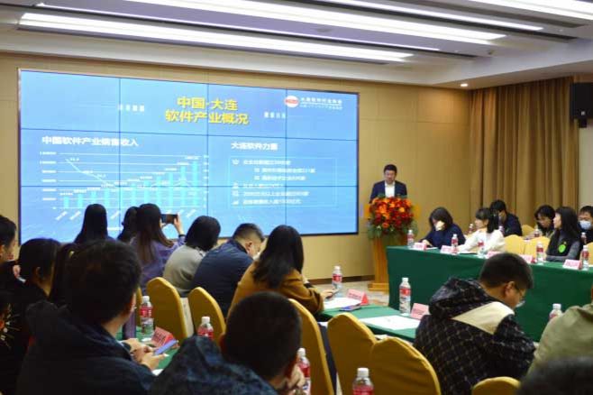 秦秘书长就大连软件产业概况先进行了介绍,大连软件企业总数超过3000家,其中中外商独资合资231家、高新技术企业636家,从业人数达24万人,2000万元以上企业超过900家,总体销售收入超1000亿元。接下来就大连软件行业的发展历程、产业图谱、企业规模分布及出口国际分布、中日产业合作情况及推动行业发展的规划进行了概述。