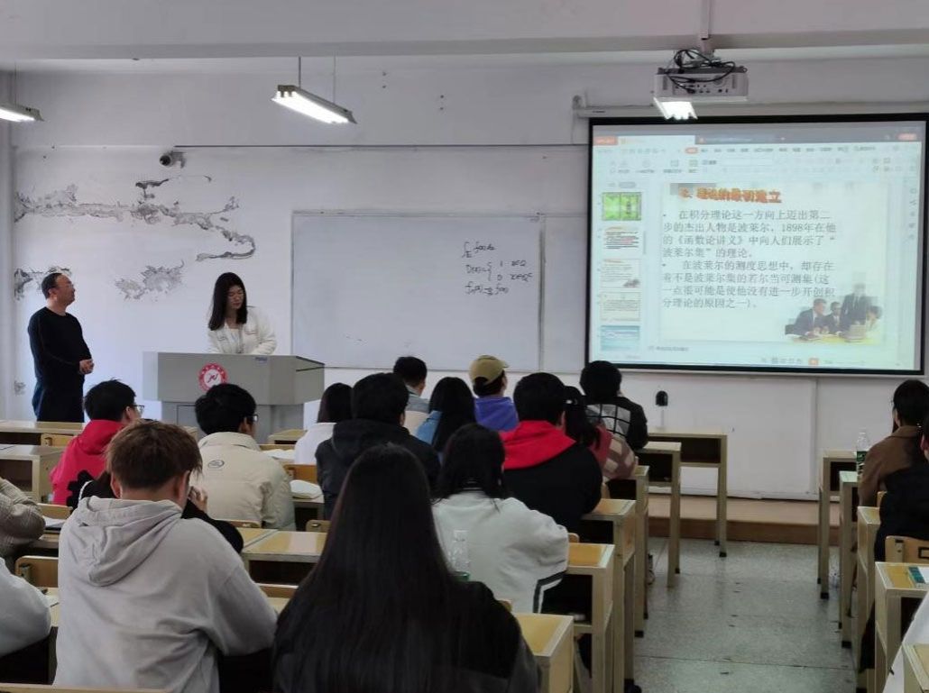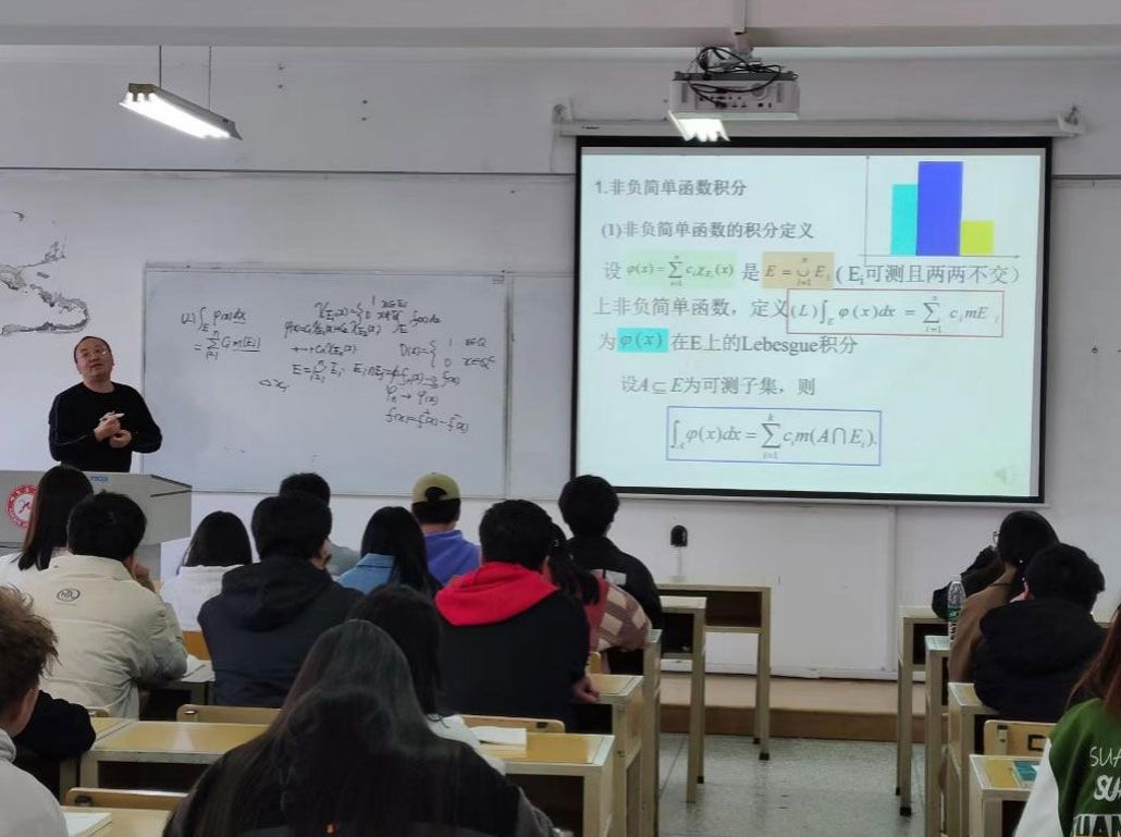 赵鹏飞老师示范交流的是《数值分析》课程中拉格朗日差值一节课,赵鹏飞老师介绍了数学家拉格朗日在数学中所做的贡献,使学生了解相关的数学史,通过数学家的故事激励学生。赵鹏飞老师还示范交流了《实变函数》课程中的勒贝格积分的定义一节课,赵鹏飞老师介绍了数学家勒贝格的生平以及从黎曼积分到勒贝格积分的发展过程,使学生对黎曼积分和勒贝格积分的关系更加清晰,对《数学分析》和《实变函数》这两门课程的关系更加清晰。