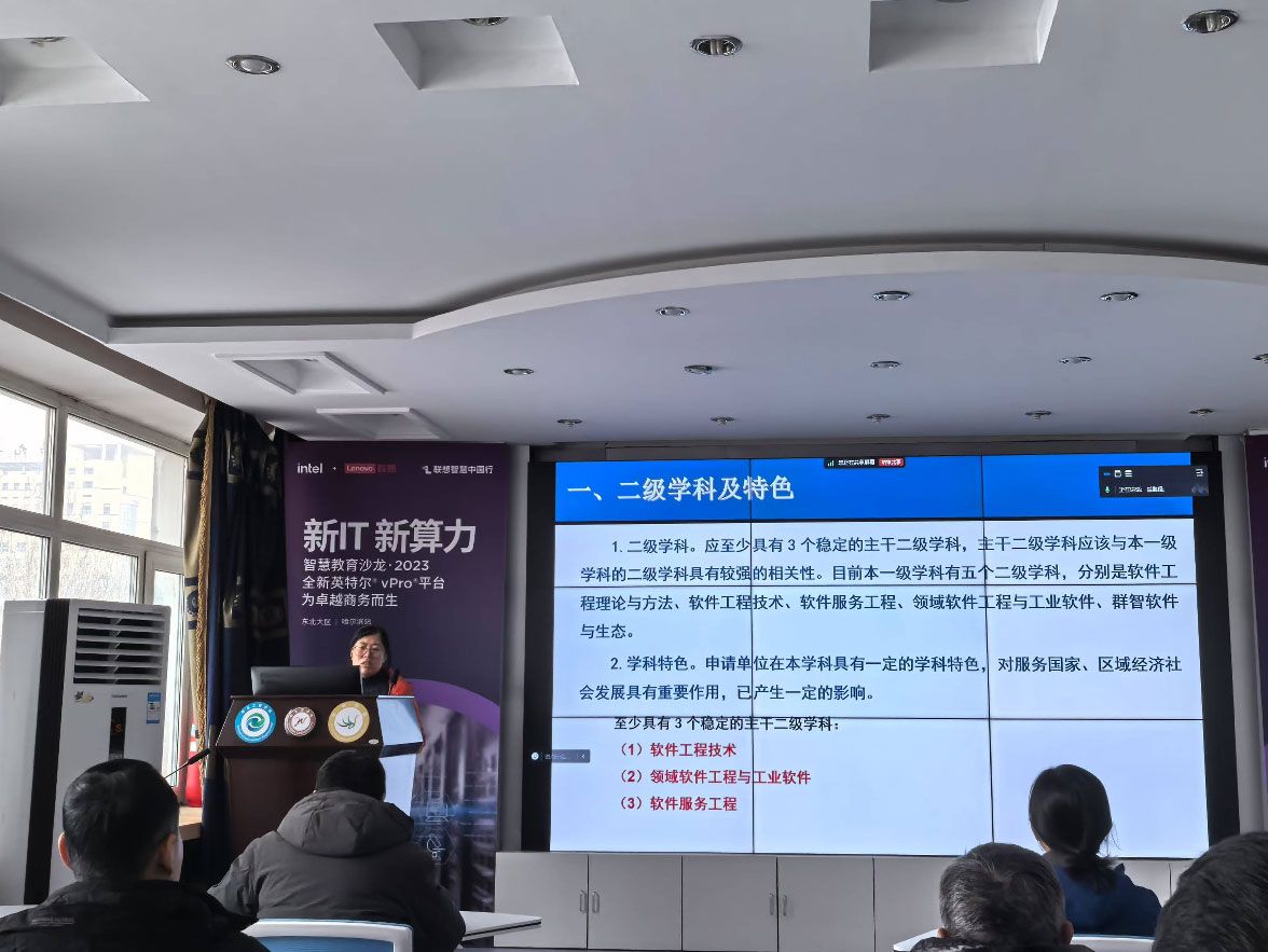 刘琳副教授详细汇报了软件工程一级学科硕士点的申报达标情况,强调了在学科队伍建设方面所面临的主要困难和接下来努力的方向。