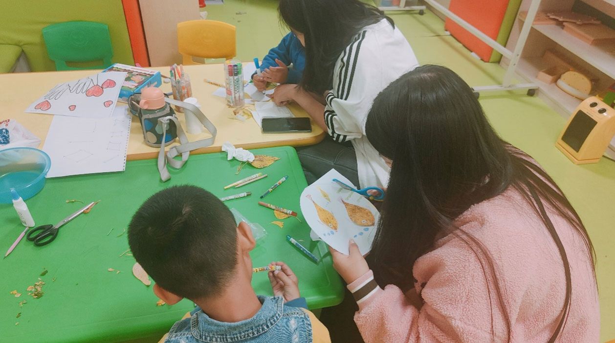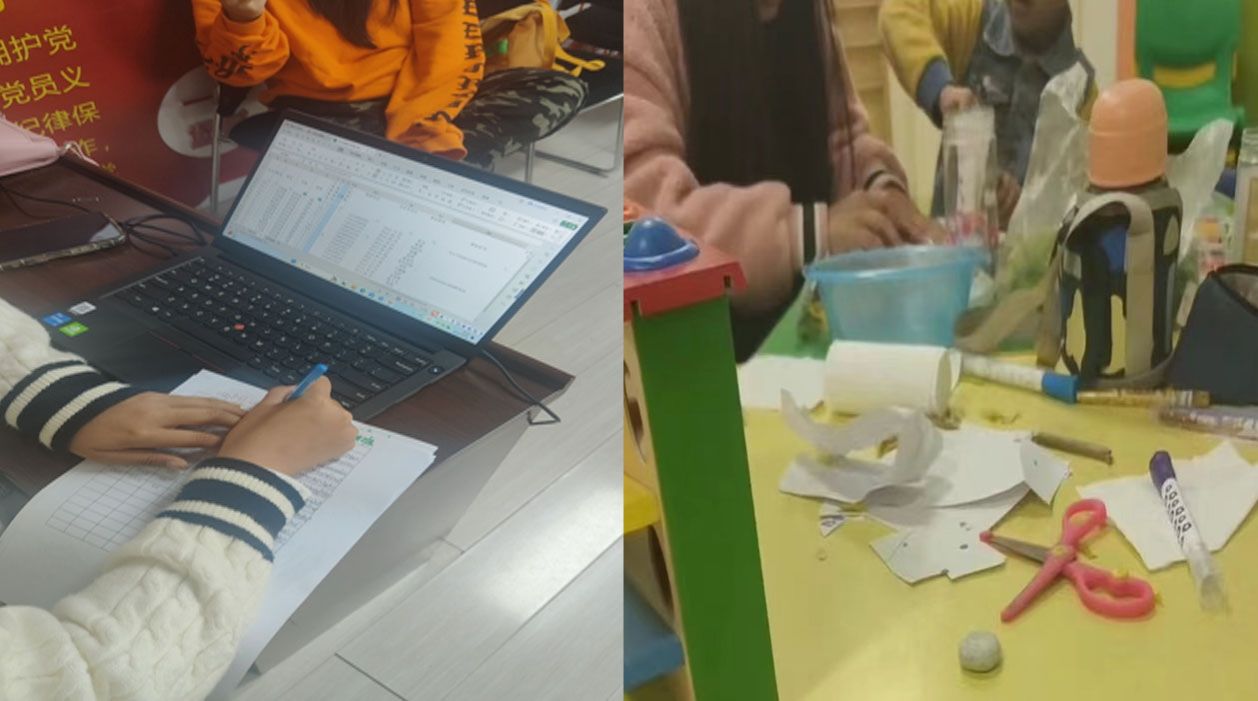 本次活动中,为帮助社区完成相关资料,志愿者们细心地帮助社区人员打表格、填表格以及核对表格,为帮助孩子们身心健康发展并养成积极乐观的良好性格,感受社会的爱心,志愿者们耐心仔细地辅导小朋友,协助孩子们完成手工树叶画、帮助小朋友们进行感统训练。