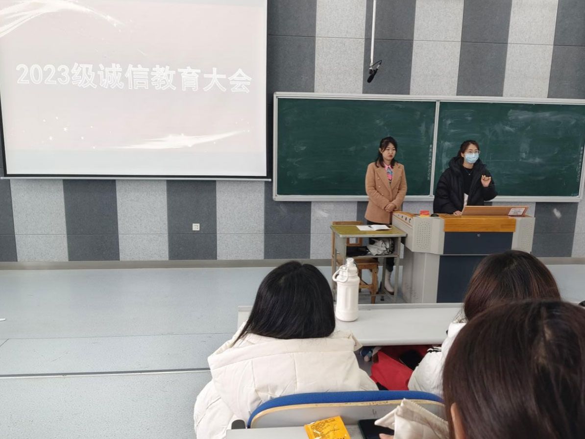 为落实《信息工程学院2023-2024学年学风建设工作落实方案》,推进学风建设,增强学生的诚信意识和自我约束能力,端正学习态度,增强自律意识,营造诚信做人、诚信做事的校园氛围,以良好的考风促进优良学风建设,信息工程学院(软件学院)组织我院学子开展诚信教育大会。