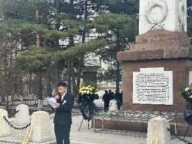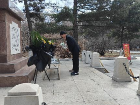 随后,学生代表迟子涵和林胜烨手持鲜花,神情庄重地走向烈士墓前,向先烈们敬献鲜花。他们表示,要以先烈为榜样,勤奋学习,为祖国的繁荣富强贡献自己的力量。团委书记夏广慧也代表学院向烈士墓敬献了花篮,表达了对先烈的敬意和怀念之情,她鼓励我院学子要珍惜当下的幸福生活,传承和发扬烈士们的英勇精神,为实现中华民族伟大复兴的中国梦而努力奋斗。
