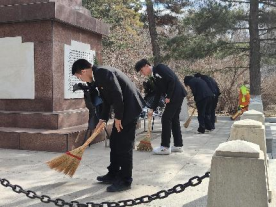紧接着,学院组织学生代表对烈士陵园进行了清扫。同学们分工合作,有的负责扫地,有的负责擦拭墓碑,大家共同努力,将陵园打扫得干净整洁,以表达对先烈的尊重与怀念。