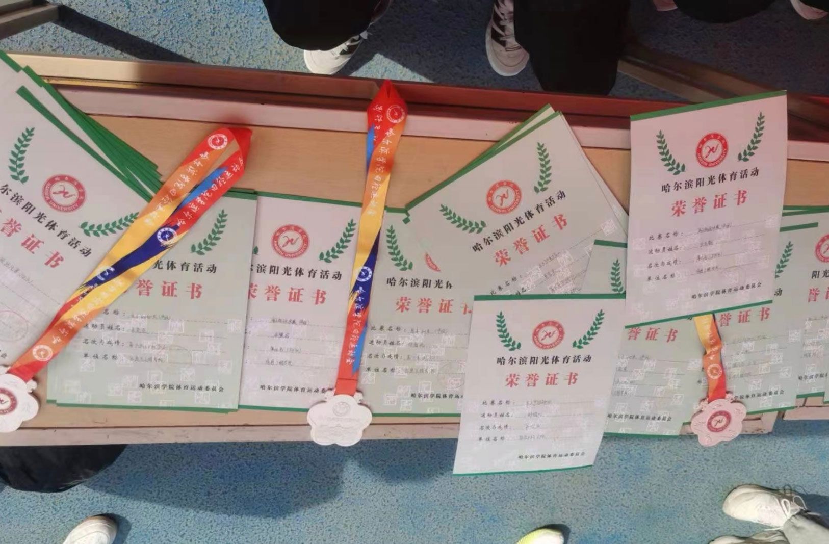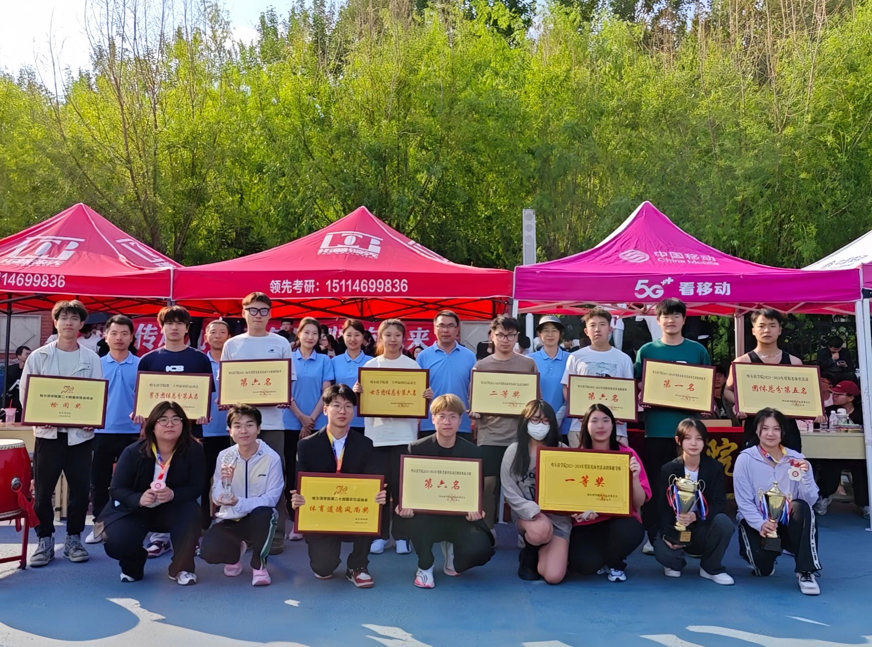 在激烈的赛事角逐中,我院运动员们以汗水铸就辉煌,用不懈的努力换取了优异的成绩。本次运动会我院荣获:健美操一等奖,优秀队列奖,由体育部领导的羽毛球赛团体第一名、篮球队篮球赛团体第六名,男子二百米郜春屹第六名,女子二百米杨佳莹第二名,男子四百米滕俊杰第六名,男子八百米游国钦第三名、李奇明第五名,男子一万米宋帅第一名,跳高郑祺凡第三名,男子跳远郑祺凡第四名、张冬寒第六名,女子跳远吕艳第四名,男子三级跳张冬寒第六名,女子三级跳吕艳第二名,男子铅球孟繁威第四名,女子拔河孟纯瑶、于佳怡、赵桓莹、刘双、孙煜、姚涵、李瑶 袁梦如、张雨涵、张鑫月、李沐格第三名,男子4×100米田聪、孟祥宇、郜春屹、宗福全第三名,女子吕艳、卢思萌、李美霖、朱涵第五名,女子4×400米刘双、奚莹莹、刘欣、刘宇桐、第六名,8×50混合接力蒋旭浩、冷昊、陈衍燃、刘驿翔、闫禹函、李心童、周炎、奚莹莹第六名。