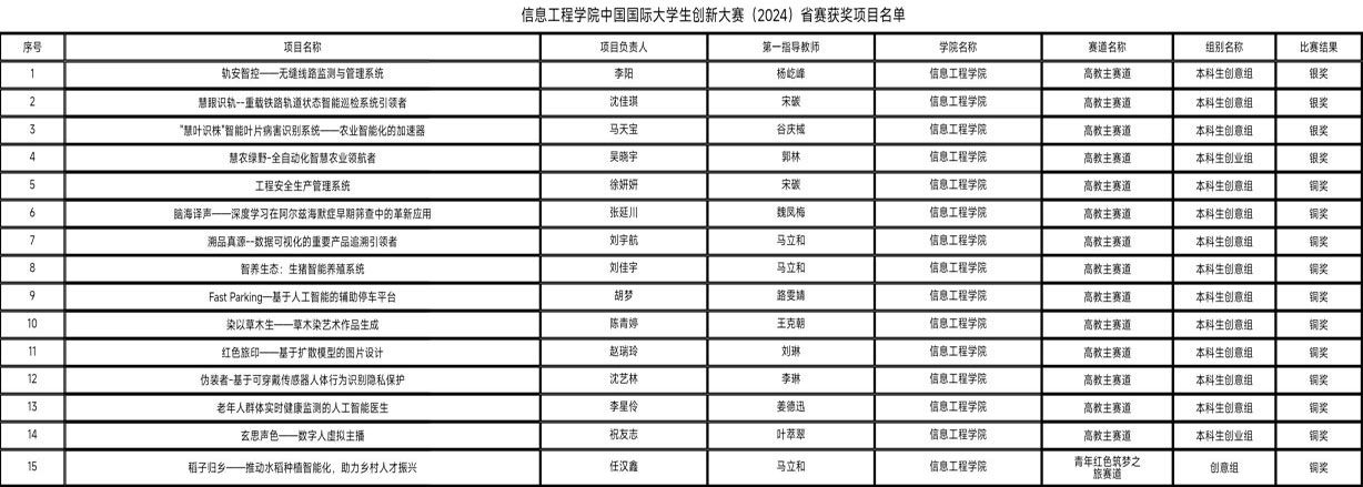 在此次大赛中信息工程学院取得了优异成绩,展示了学子们的奋发精神与创新能力,凸显了学院创新创业教育的丰硕成果。未来,信息工程学院将以本次大赛为契机,通过以赛促学、以赛促创、以赛促改,培养具备创新精神、创业能力和社会责任感的高素质人才,增强学生的创新创业意识,提升学生的创新创业能力,为培养出“一高、两有、三强”的高素质应用型人才贡献新的力量。