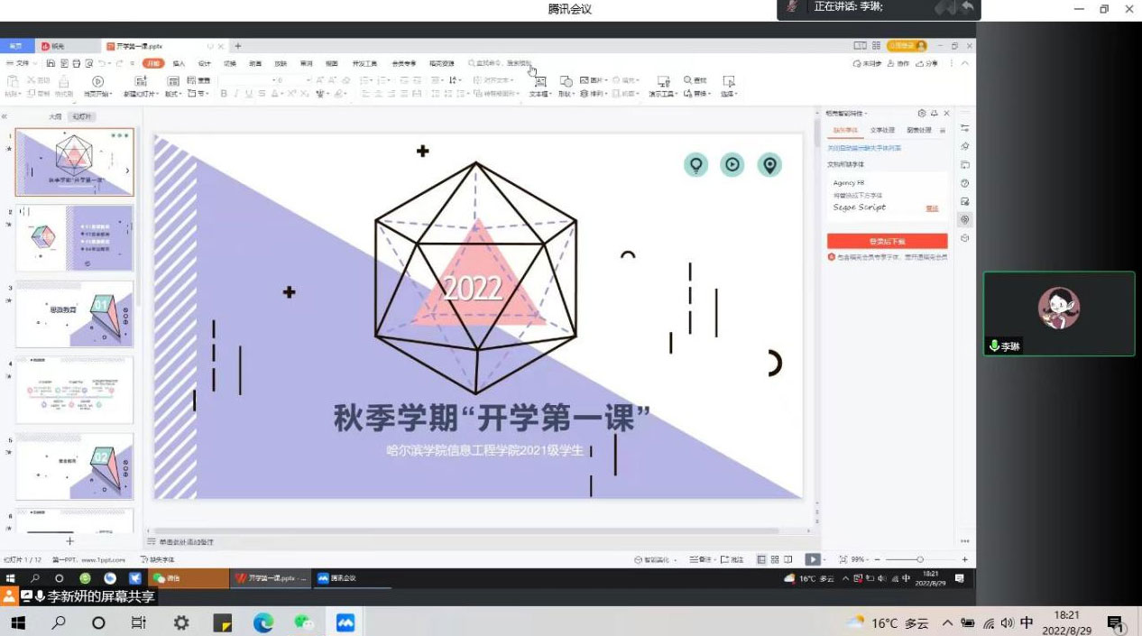 为深入贯彻党的教育方针,落实立德树人的根本任务,充分发挥对广大学子的思想引领作用,信息工程学院(软件学院)于2022年8月19日至29日组织召开了2022年秋季新学期“开学第一课”主题活动。学院党委书记王克臣,全体辅导员及全体学生参加了此次活动。
