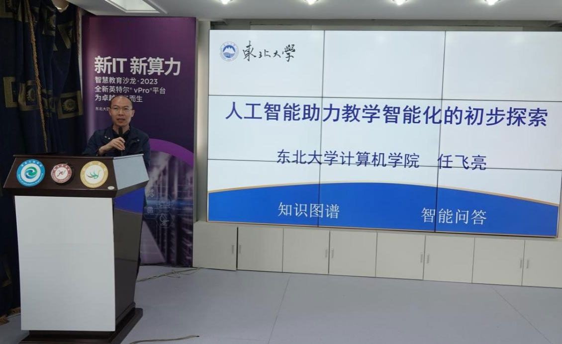 论坛的第二个讲座是任飞亮教授的《人工智能助力教学智能化的初步探索》,任教授以东北大学“人工智能+教育”案例为切入点,将大语言模型、知识图谱等人工智能前沿技术相结合,依托计算机学科优势,面向《离散数学》课程教学,推出了基于TechGPT的智能助教系统,可以实时、全方位、智能地为学生提供个性化助教服务,从而有效地提升学生的课程学习质量,为"人工智能+教育"进行了有益的探索。