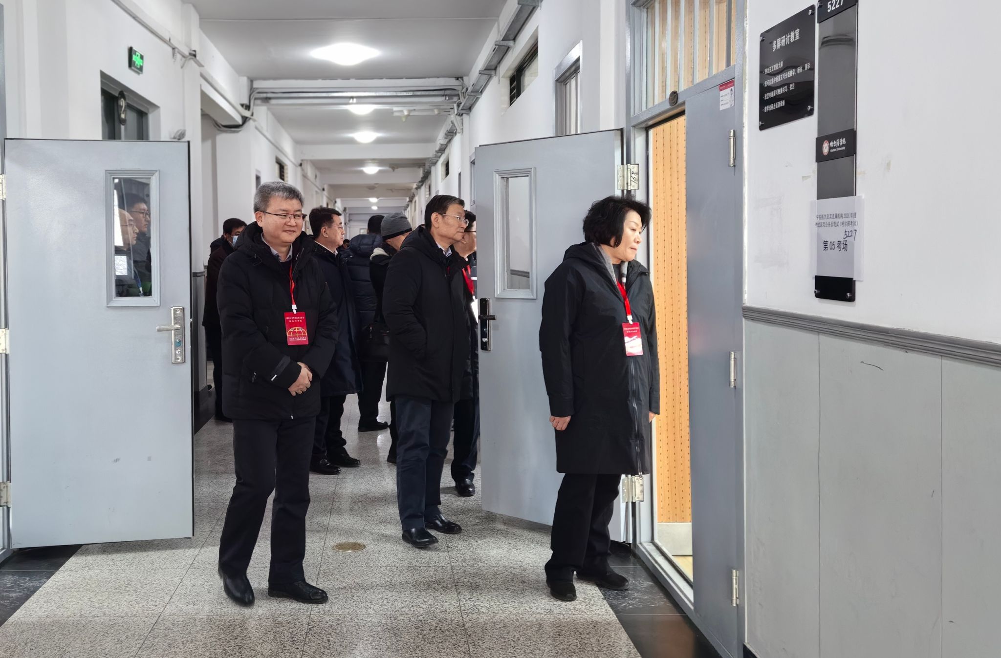 (文/李德生)11月25日、26日,中央机关及其直属机构2024年度考试录用公务员笔试在我校举行。26日上午,省人社厅党组书记、厅长沙广华,省委组织部副部长、公务员局局长张金丰,省人社厅党组成员、常务副厅长何衍春,省人社厅党组成员、省社保中心党委书记、主任于占淮,省人社厅二级巡视员高广宏,市委组织部副部长、市人社局党组书记、局长郭世军,市委组织部副部长李昕春,市纪委监委驻市人社局纪检组长吴文斌,市人社局副局长杜忠家等领导到我校巡视考试情况。我校党委书记苍松,校长、党委副书记于成学,副校长孙红镱,学校人事处、党政办公室、教务处等相关部门负责人陪同巡视。