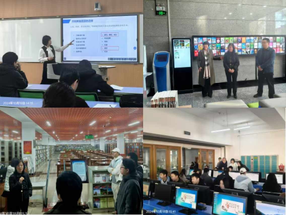 10月18日,图书馆联合校教师教学发展中心开展了主题为《图书馆数字资源推广使用》的专题讲座及参观实训活动。专题讲座由图书馆咨询服务部主任朱娜娜主讲。她从我校图书馆的历史沿革、部门设置和文献资源等多个方面详细介绍了图书馆的基本情况,并重点讲解了知网研学、超星读秀、Worldlib人工智能在线咨询、笔杆网、京东读书、文泉学堂等教师常用数据平台的个性化功能和使用方法。活动线上线下同步进行,吸引了2024年新教师教学发展研修班全体学员及各院教师代表等百余人参加。通过本次专题讲座和图书馆实地参观及上机实训,教师们对图书馆的数字资源有了较为为全面的认识,为其利用图书馆优质数字资源和工具助力教学科研提供了有益指导。