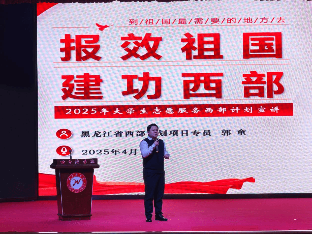 团黑龙江省委西部计划项目办西部计划项目专员郭童从“项目介绍”“选拔招募”“政策保障”“服务派遣”四大板块,专题讲解2025年西部计划实施方案。围绕同学们关注的政策保障,从服务期间和服务期满两个阶段,详细讲解各项保障政策,既指出服务期内生活补贴、交通补贴等多方面的支持,又详解服务期满后在升学、就业等方面的优惠政策,帮助同学们全面了解西部计划,激发参与热情。
