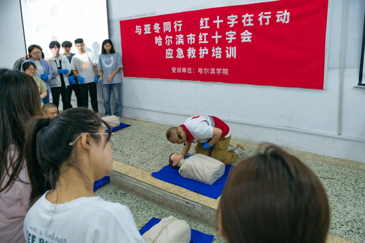 (文/黄婷婷)为提高我校亚冬会赛会志愿者服务水平,高质量完成亚冬会志愿服务工作和公共安全保障,我校团委邀请哈尔滨市红十字会于6月22日对我校亚冬会赛会志愿者进行应急救护专项培训。校党委委员、副校长吴旭峰到现场指导工作,并鼓励志愿者认真学习,提高应急救护能力。