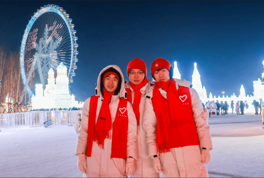 食品工程学院2021级食品科学与工程4班李长卓及食品质量与安全1班徐铭键两名同学负责园区内部摩天轮及附近驿站的游客疏导工作,在志愿服务的过程中,他们一遍遍为游客耐心地讲解园区路线。他们表示能为哈尔滨的冰雪旅游助力很荣幸,作为一名志愿者,虽然我们是平凡的,但并不平庸,因为我们有梦想、我们有快乐、我们有追求,在参与志愿活动中体味人生百态,在帮助他人的同时,不断鞭策自己,努力做到更好,志愿者活动为我们提供了接触社会和锻炼自己的机会。非常荣幸能成为这样一个团队的成员,也期待能够参加亚冬会的志愿服务活动。