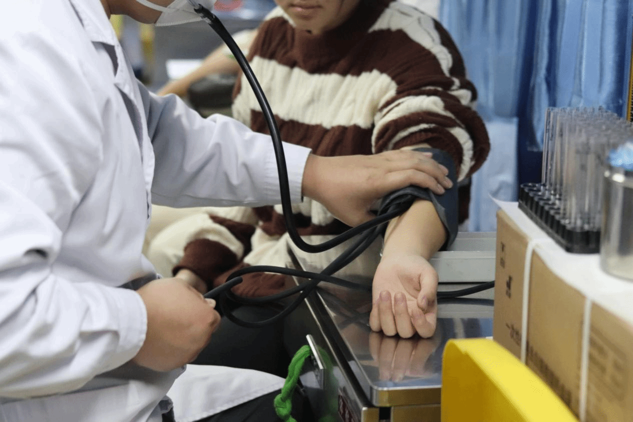 一食堂献血征询登记区,献血者们在志愿者的指引下井然有序的排队、登记个人信息。在填表格时,志愿者们认真询问献血者的体重、饮食情况、近期生活作息等基本情况,并判断是否符合献血的基本要求。面对符合要求的献血者,志愿者们则耐心讲解填写《无偿献血登记表》的规范要求并带入献血车进行下一步检查。
