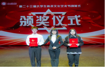 闭幕式上,与会领导与师生共同观看了本届艺术节总结宣传片,随后举行了隆重的颁奖仪式。苍松为第四届”丁香校园之星”五星学习之星、就业之星、体育之星突出贡献奖共27人颁发奖杯、奖金。鼓励他们发挥校园之星的引领、示范、带动作用,激励更多同学成长为“五育并举,四信并立”的时代青年。于少鹏、吴旭峰及相关职能部门负责人为本届科技文化艺术节获奖单位和个人代表颁发荣誉证书。