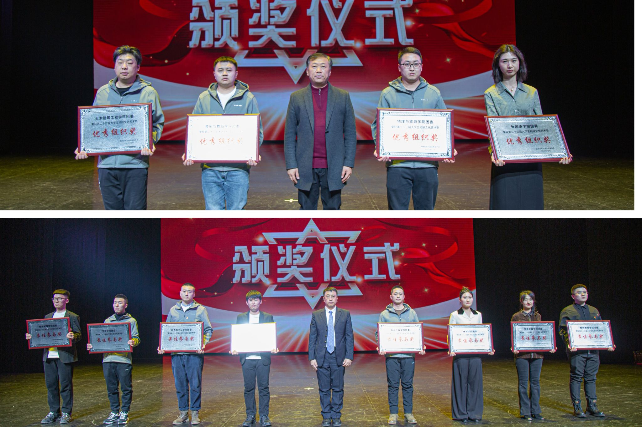 于少鹏、吴旭峰分别为艺术节优秀组织奖、最佳参与奖获奖单位颁奖