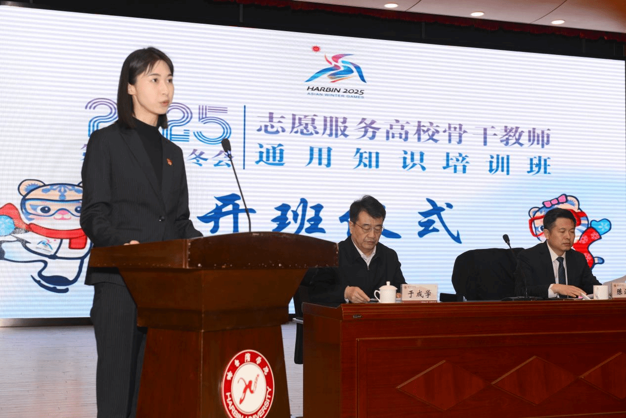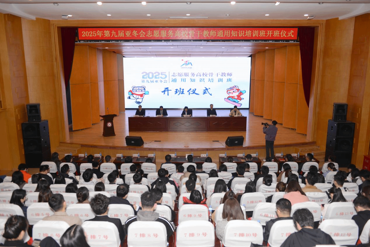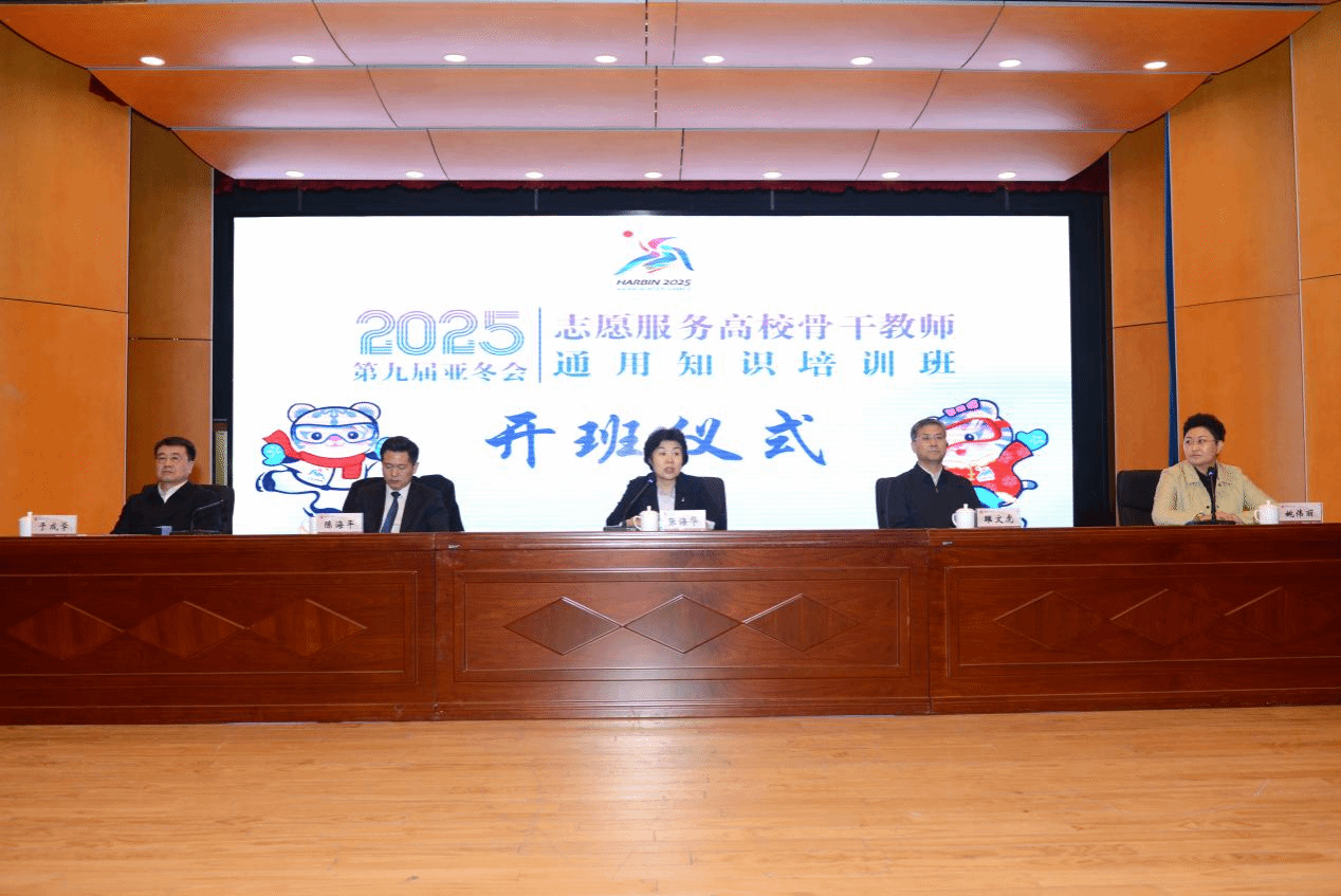 (文/张玉娟)3月29日,2025年第九届亚冬会骨干教师通用知识培训班开班仪式在我校成功举办。亚冬会执委会副主任、市政府副市长张海华作开班动员讲话。省教育厅党组成员、副厅长雒文虎、团省委副书记陈海平、我校校长、党委副书记于成学、副校长吴旭峰出席本次活动,会议由亚冬会执委会副秘书长姚伟丽主持。来自部属、省属、市属高校的优秀骨干教师以及市直单位志愿者约160人共同参与了这一重要时刻。