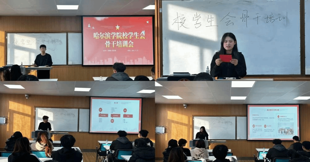 此次培训内容丰富多样,涵盖了组织协调、团队协作、沟通技巧、活动策划与执行、时间管理等多个方面。学生会优秀骨干代表连殊锐和蔚美涛分别就素质培养与技能培训方面进行了精彩的演讲。他们不仅对学生会成员们日常工作所需要的工作技能做了简要论述,还介绍了校学生会培养体系和各部门工作职责,并强调了学生干部要兼备崇高理想与强烈使命感,具有服务大局的意识;要倡导勇于担当的精神,在实干中磨砺自我,成为同学们心中的榜样;要持续学习,不断吸收新知识与技能,培养批判性思维与实践能力。