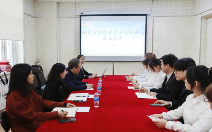 (文/李一宁)为深入贯彻落实习近平总书记关于“冰天雪地也是金山银山”的重要论述,推进“冰雪文化育人”特色建设,让冰城的冰雪底蕴成为育人的鲜活教材,10月22日下午,我校冰雪文化宣讲团成立仪式在丁香剧场314室成功举办。校党委宣传部、校团委负责人及宣讲团成员参加。