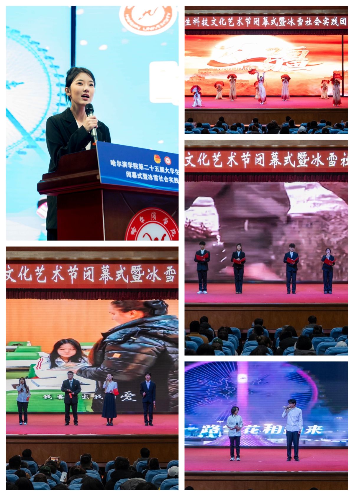 诗朗诵《忠骨千秋壮九州》以铿锵之声缅怀先烈,传承红色基因;舞蹈《万疆》以灵动之姿抒写家国情怀,展现文化自信;歌曲《尔滨的雪》以优美旋律礼赞北国风光,浸润青春心灵。文艺展演生动诠释了艺术节的育人成效,更是学校以文化人、以美育人理念的生动实践。