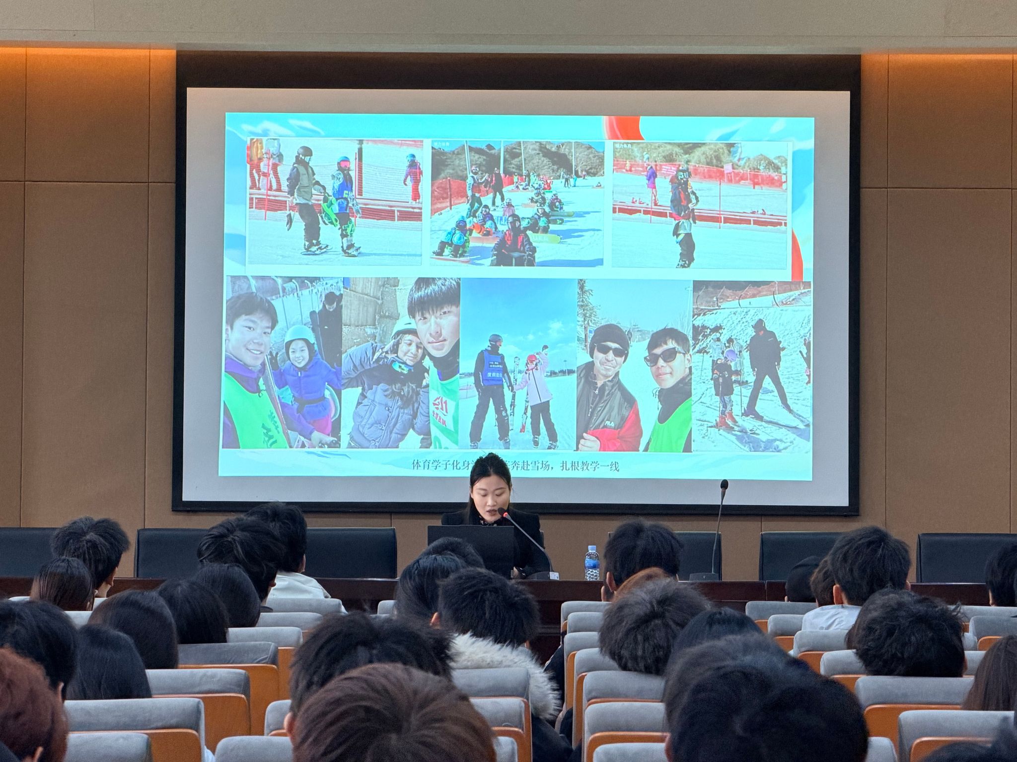 团课紧扣寒假“返家乡”社会实践成果,系统呈现体育学院学子服务冰雪经济、助力文旅发展、保障重大赛事、反哺基层建设的鲜活案例。潘昊鑫在课程中强调“十五五”规划蓝图催人奋进,青年当走出课堂、扎根一线,在实践中检验所学、锤炼本领。寒假期间,百余名同学依托专业优势,奔赴全国雪场、冰雪盛会、国际赛事及乡村社区,担任滑雪教练、赛事裁判助理、运动康复师、志愿服务骨干等,在冰雪普及、文旅服务、赛事运行、乡村振兴等领域实干奉献,用专业技能与暖心服务助力地方冰雪经济发展,展现哈院青年的责任与风采。团课倡导打破学科边界,推动不同专业青年对接社会需求,促进知识从课堂走向一线、从理论转化为实效,在为民服务中实现青春价值。