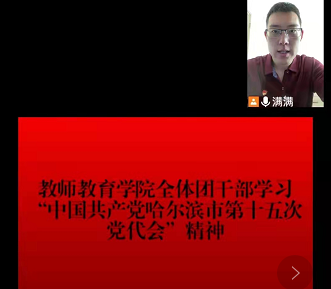 马克思主义学院分团委召开会议热议市第十五次党代会精神。分团委书记孟昭名带领全体同学一起观看“中国共产党哈尔滨市第十五次代表大会”在线直播,共同学习了会议精神,并分享感悟。同学们表示将结合专业深思细悟,领会精神实质,以高度的政治责任感和使命感,深刻把握大会报告的精神实质,牢记初心、担当使命、团结拼搏,奋力推进哈尔滨全面振兴全方位振兴,为全面建设社会主义现代化新龙江作出贡献。