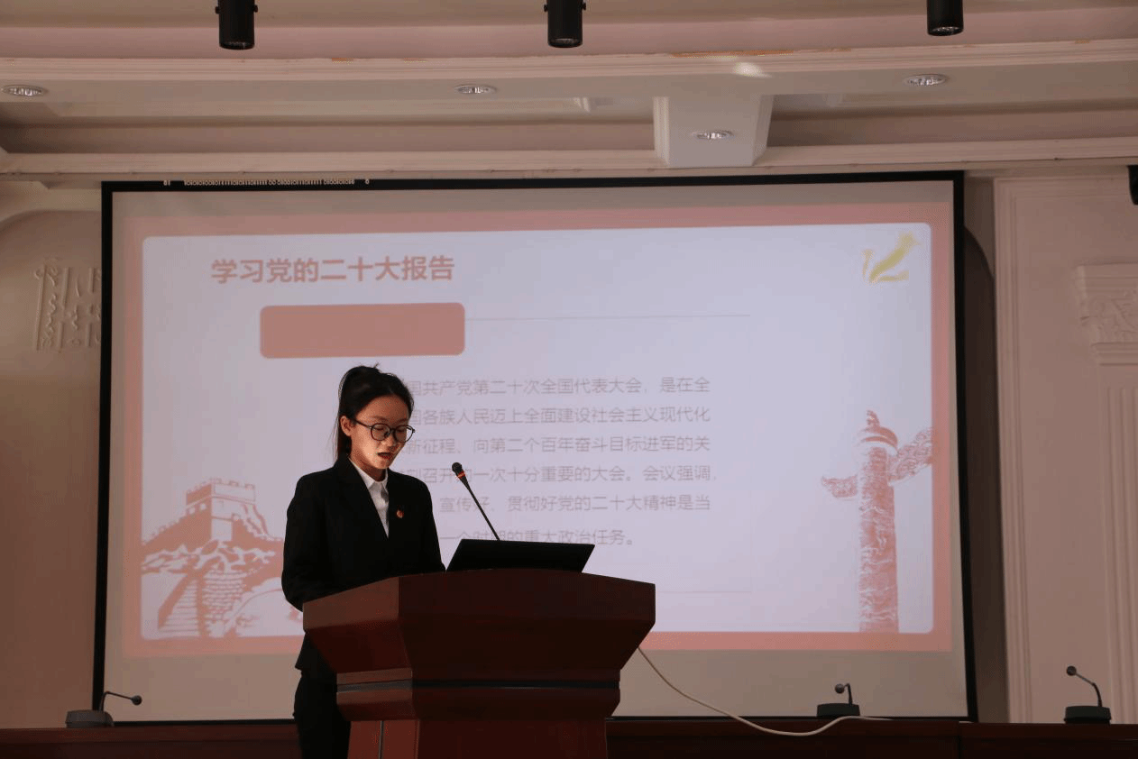 宣讲会上,我校孙文喆、王玺越两位同学结合自身学习宣传贯彻党的二十大精神实践,以青年视角对党的二十大精神进行青年化阐释。号召广大青年坚定不移听党话、跟党走,怀揣梦想又脚踏实地,以实际行动践行“请党放心 强国有我”的青春誓言。