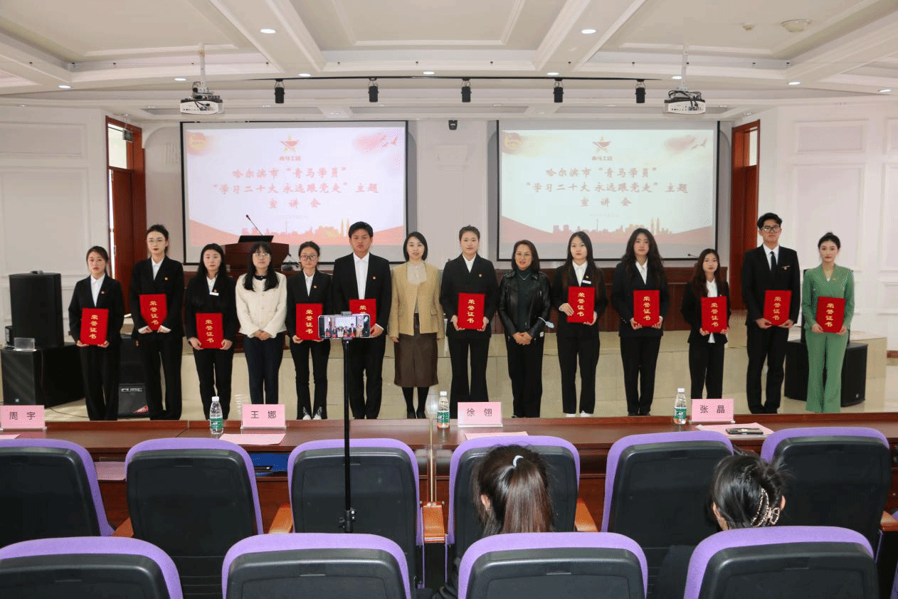 (文/张玉娟)4月21日下午,由团哈尔滨市委、哈尔滨市学联主办的哈尔滨市“青马学员”“学习二十大 永远跟党走”主题宣讲会在哈尔滨幼儿师范高等专科学校举行。我校经济管理学院孙文喆、地理与旅游学院王玺越两位青年学生参加宣讲。团市委副书记徐翎出席活动。