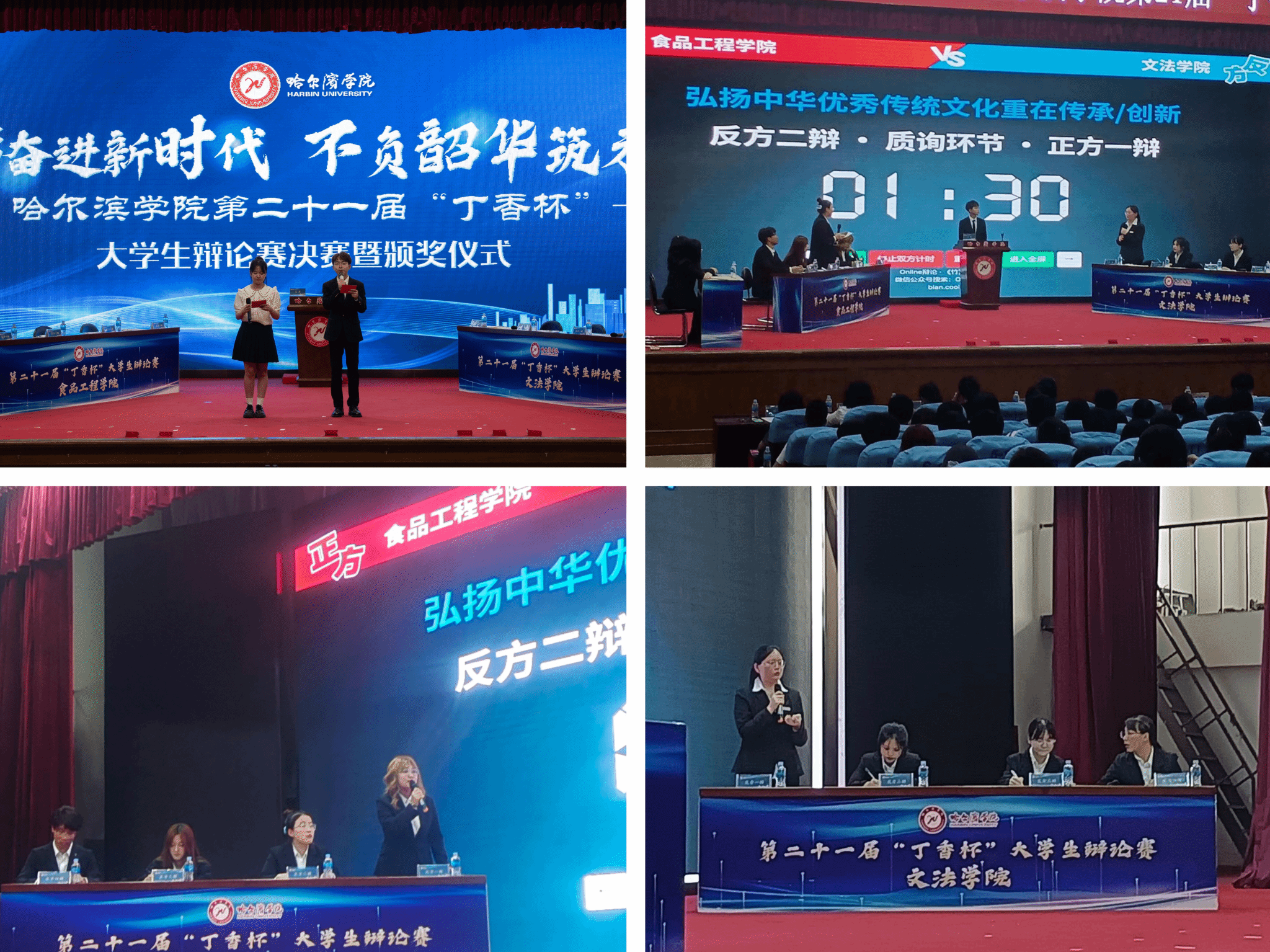 (文/李一宁)6月14日由校团委主办的“砥砺奋进新时代,不负韶华筑未来”哈尔滨学院第二十一届“丁香杯”大学生辩论赛决赛暨颁奖仪式在图书馆报告厅隆重举行。校党委委员副校长吴旭峰、校团委负责人张玉娟、食品工程学院党委副书记吕林海以及各学院师生代表观看比赛。马克思主义学院党总支书记兼院长孙芳、校保卫处处长李家强、马克思主义学院孙丽颖教授、冯引副教授、教师教育学院杜立书副教授担任决赛评委。