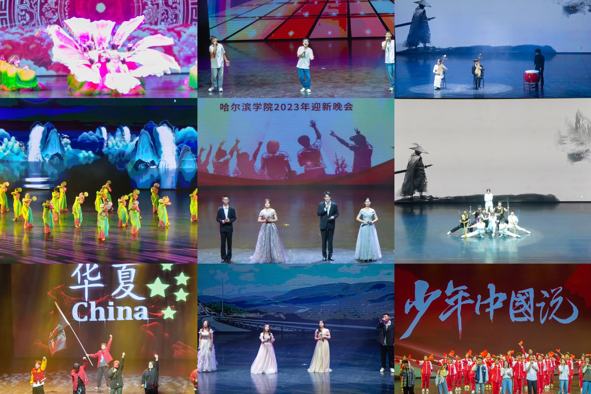 开幕式后,学校领导与师生们共同欣赏迎接2023级新同学晚会。晚会在音乐与舞蹈学院带来的开场舞《盛世欢歌》中拉开帷幕。《青春修炼手册》《舞动哈院》以跳跃的音符和动感的舞姿展现了青春的活力和魅力;琵琶演奏《十面埋伏》及武术表演《百般武艺》体现了中华五千年文化的刚柔并济;歌曲联唱《一路生花》、《起风了》、《华夏》唱出了青年学生们奋斗拼搏的精神风貌;欲把西湖比西子,淡妆浓抹总相宜,大学生舞蹈团的《淡妆浓抹总相宜》把观众带入到山水之间;勇当先锋、勇挑重担,是中国青年的鲜明特质,是新时代中国青年的时代风采,歌曲《少年中国说》将晚会推向高潮,新时代新征程,希望我校青年学子自觉融入党和人民团结奋斗的历史洪流,争当伟大理想的追梦人,争做伟大事业的生力军。