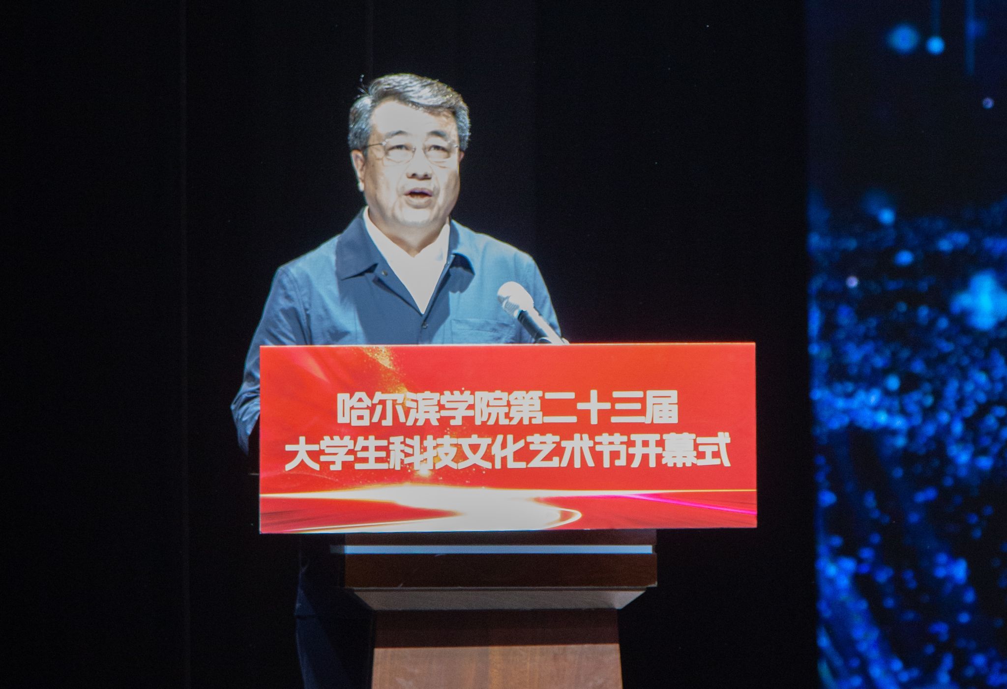于成学首先代表学校对第二十三届大学生科技文化艺术节的隆重启幕表示热烈的祝贺!向广大师生致以亲切的问候和良好的祝愿!