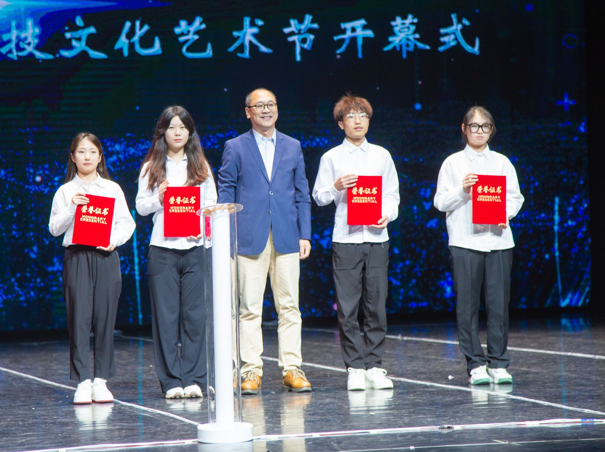 他指出,本届大学生科技文化艺术节要坚持以习近平总书记关于教育、科技、人才工作的重要论述为指引,以提升大学生创新能力和文化素养为目标,不断推动科技创新、人才培养、文化建设“融合贯通”,希望在青年学子心中种下尊崇科学、热爱艺术的种子,让创新求实的校园风气与充满科学家精神的文化氛围,弥漫整个校园,达到以文化人、以艺通心的目的。他希望广大青年学生、教师:一是树牢科技报国之志,用科学家精神激发科技创新热情。勉励青年学生将个人梦想与国家梦想相结合,传承“两弹一星”精神,继承弘扬老一代科学家科技报国的优秀品质,让青春之花开满科技创新的“无人区”和“新高峰”。二是涵养优良校风学风,用社会主义核心价值观引领校园文化。优良校风学风是落实我校“三三五”发展战略和“一高、两有、三强”人才培养目标的重要保障。青年学生要明确学习目的,端正学习态度,遵守学习纪律,践行学习诺言,实现学习目标。要培育和践行社会主义核心价值观,帮助学生找到成才方向,调动学生学习积极性、主动性和创造性。教育引导学生树立正确的成才动机,变要我学为我要学,从早晚自习、课堂笔记抓起,把降低补考率、提升就业率作为学风建设的阶段性目标。要教学生知识,又要教学生如何做人做事,既要提高业务水平,又要紧密结合教学、科研及育人工作实际,积极主动地关心学生成长成才,成为学生全面发展的指导者和引路人。学风建设是一项系统工程,需要全员参与,形成强大合力,在全校范围内形成扎实的工作作风、严谨的教风、优良的学风。三是锤炼干事创业本领,用笃行实干践行青春使命担当。作为青年学生,要珍惜韶华,扬长补短,不断锤炼自己、提高自己,敢于克难攻坚,以踔厉奋发、笃行不怠的姿态践行“请党放心、强国有我”的青春誓言。