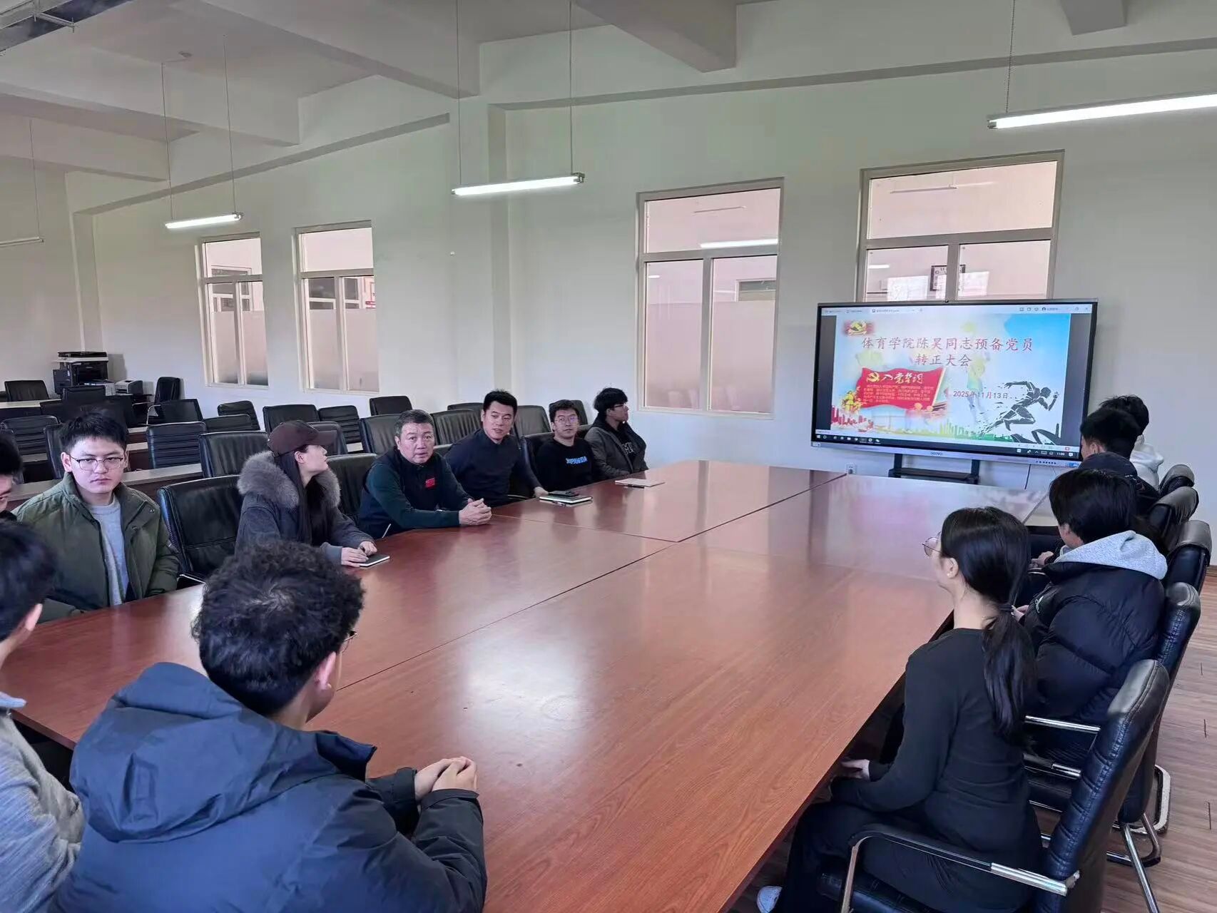 为严格落实党员发展工作程序,加强党员队伍建设,充分发挥党员先锋模范作用,体育学院学生党支部于11月13日在九号楼9223会议室召开预备党员转正大会。学生党支部全体党员及部分积极分子参会,会议由学生党支部书记潘昊鑫老师主持。