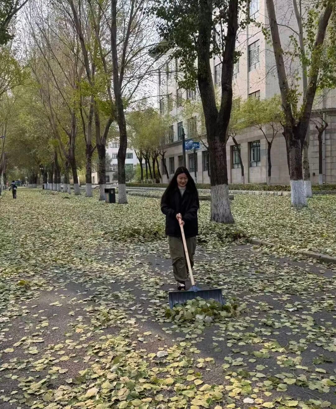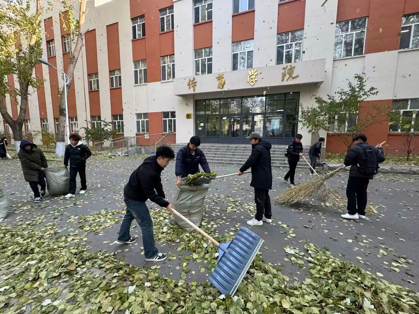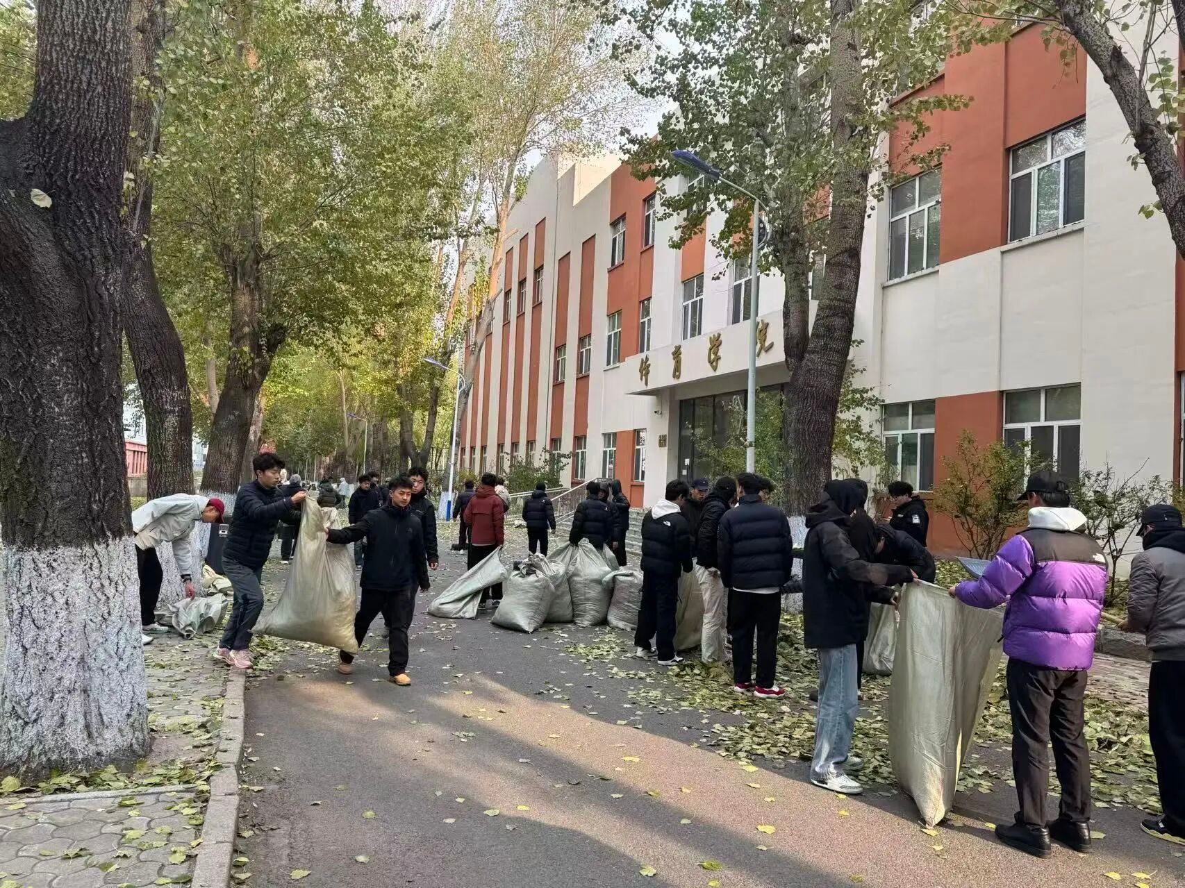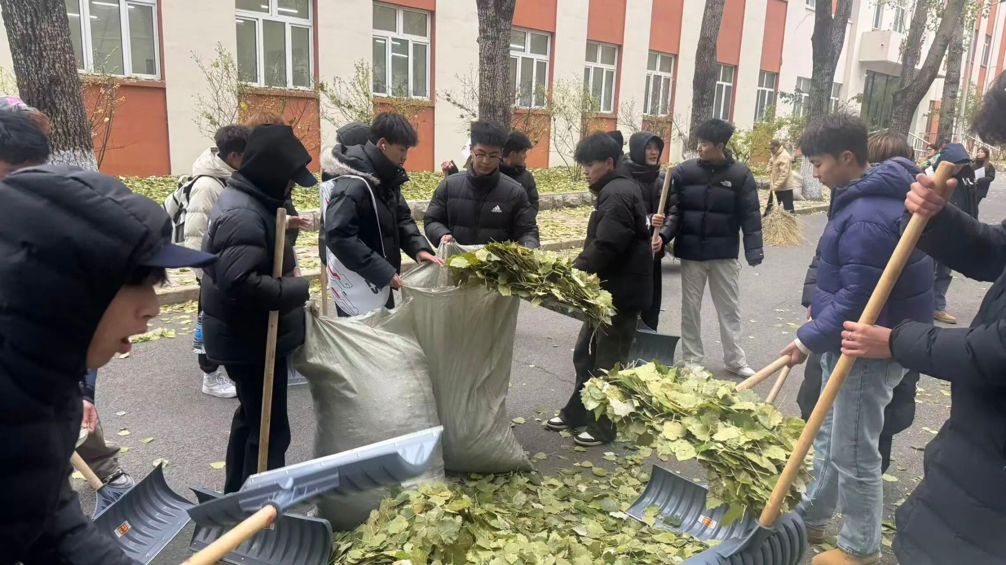 经过近两个小时的辛勤劳作,各区域落叶均被清扫完毕,累计清理落叶20余袋。看着焕然一新的校园环境,同学们脸上洋溢着自豪的笑容。