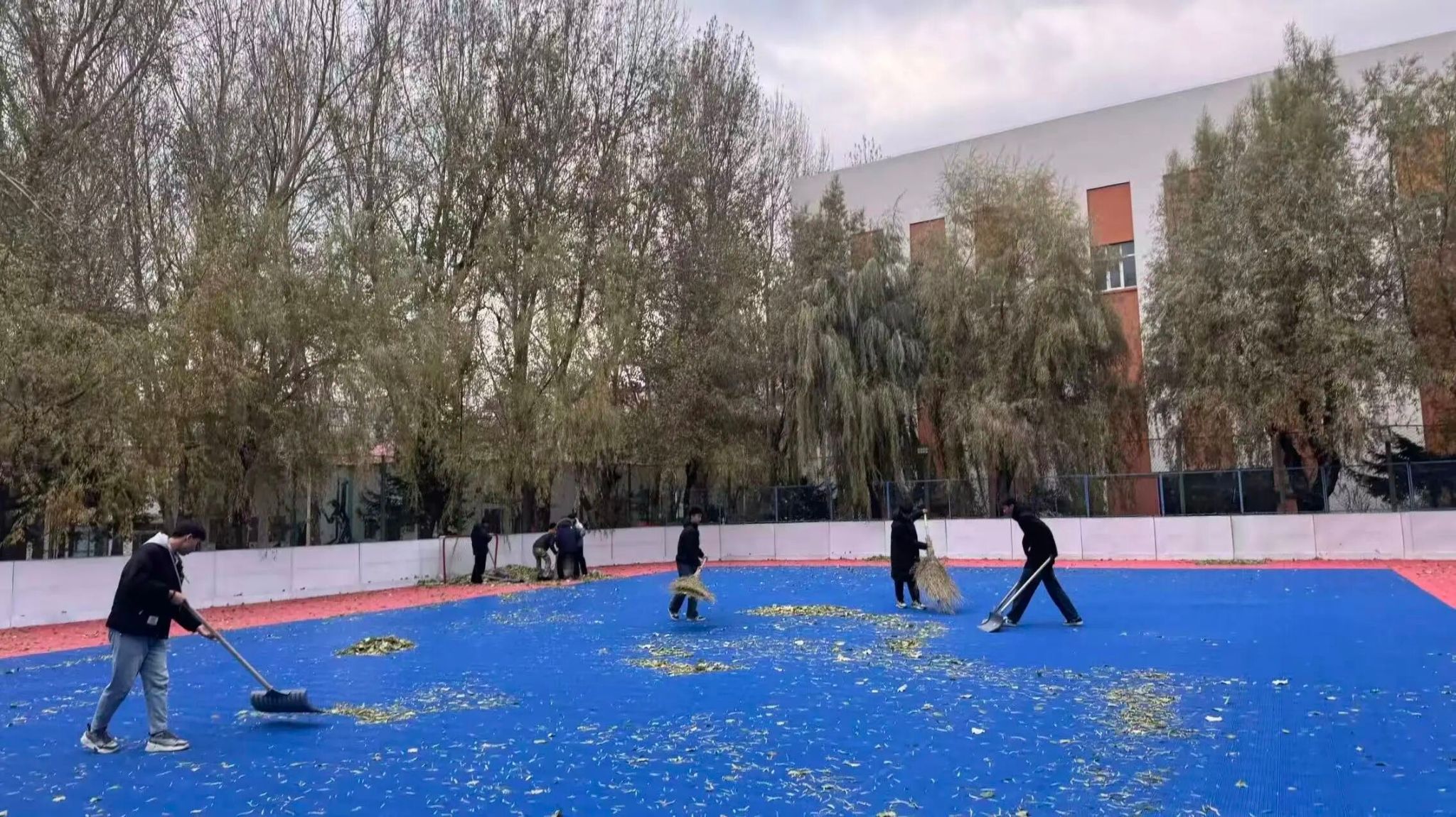上午9时,参与活动的学子在9号教学楼前集合完毕。学生会负责人首先明确活动分工与安全注意事项,将同学们划分为6个小组,分别负责校园轮滑场、林荫道及九号楼门前等区域的落叶清扫工作。分发完扫帚、铁锹、垃圾袋等工具后,各小组迅速奔赴指定区域,一场热火朝天的“扫叶行动”正式拉开帷幕。