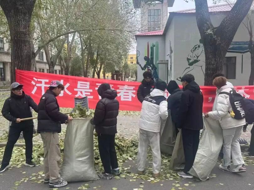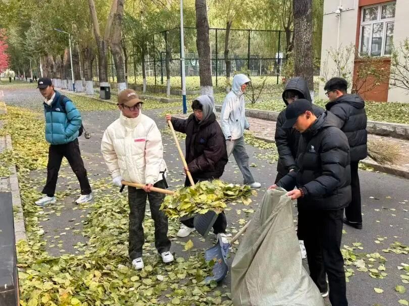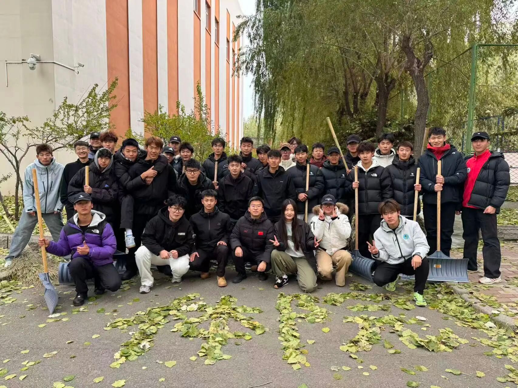 深秋的校园,金黄的落叶铺满路面,虽为校园增添了诗意秋景,却也给行人通行、环境维护和消防安全带来不便。活动中,体育学子们充分展现出不怕苦、不怕累的运动精神:有的同学手持扫帚弯腰清扫,动作利落干脆,将散落的落叶归拢成堆;有的同学两两配合,用铁锹将落叶装入垃圾袋,分工协作有条不紊。