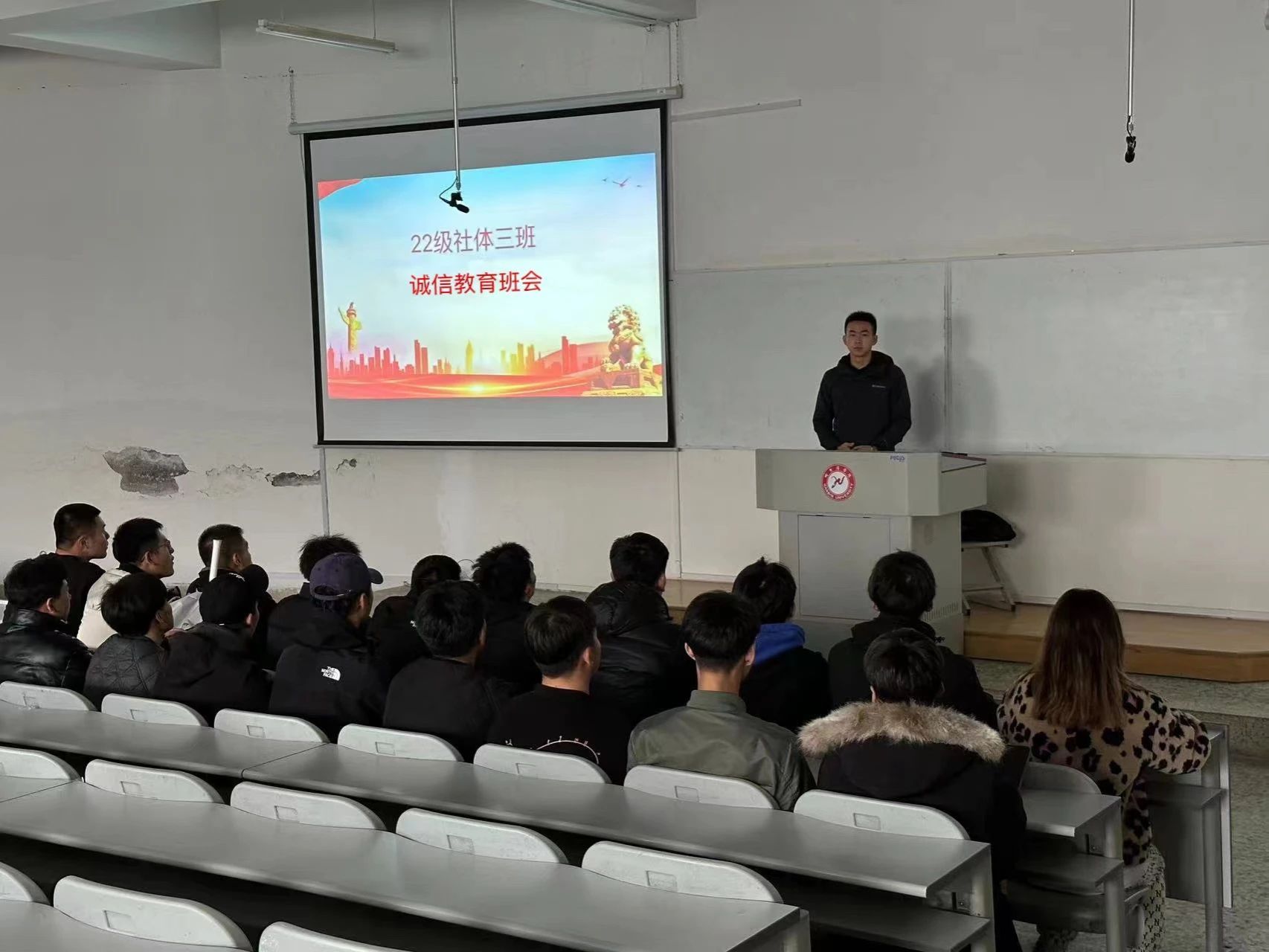人无信不立,业无信不兴,国无信不强。为发扬崇尚诚信的校园文化和校园传统,体育学院于5月20--24日期间组织开展了以“诚信促成长”为主题的诚信教育主题班会,引导我院学生树立正确的人生观和价值观,强化诚信意识。希望全体同学认识到诚信是新时代道德建设的强烈呼唤和新时代所需要的重要文化,引导同学们自觉做新时代诚信文化的建设者。