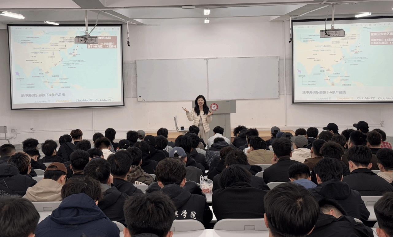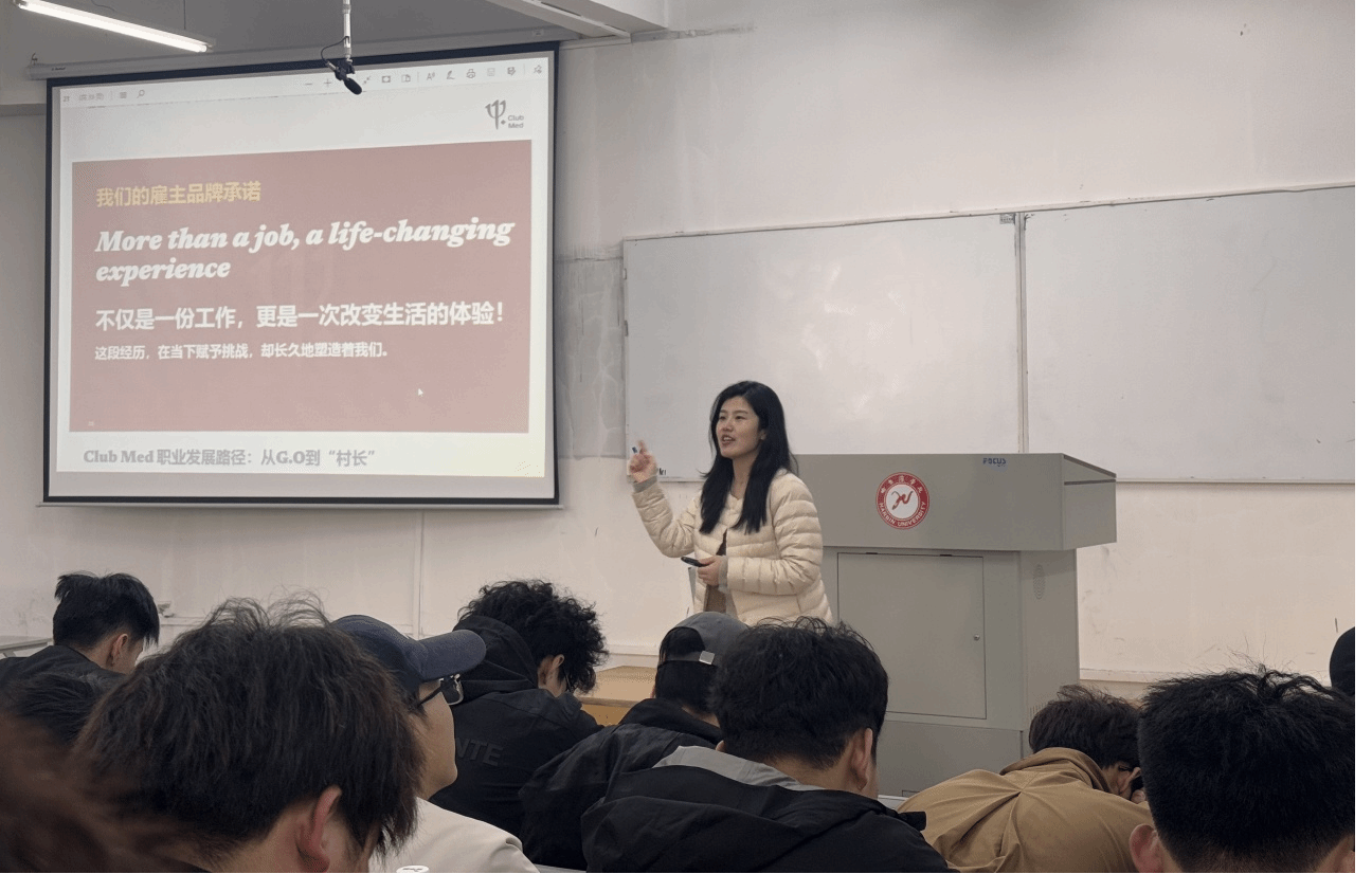 Club Med地中海俱乐部是复星集团旗下重要的经营板块之一。宣讲会上,地中海俱乐部人力资源专员邹辉老师化身“职业引路人”,深入细致的向同学们介绍了地中海俱乐部的发展历程、发展规模、企业文化、岗位设置、实习工作条件和职业发展规划,让全体同学对企业有了全面的了解和认识。尤其对适合于体育专业学生的岗位、条件、未来发展和机遇做了深入的解读,激发了同学们的注意力和对未来的期待。期间,邹辉老师与学生进行了互动交流,对学生提出的所关注的问题一一进行解答。
