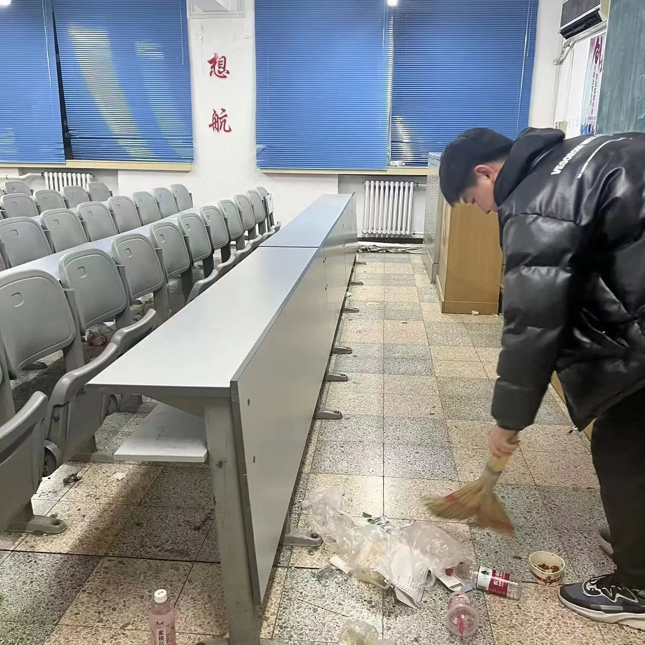 教室是传播知识和文化的重要窗口,记载着大学生活点点滴滴的青春印记。我院希望通过对教室卫生的打扫,践行“我为同学做实事”的初心,发扬无私奉献,积极参加劳动的精神,从而为大家提供一个舒适、干净的学习环境。