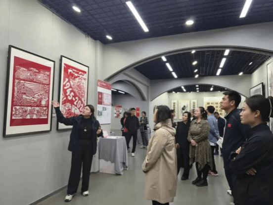 参观的最后环节,在吕朔老师的讲解下,师生深入了解了非遗手艺的传承与创新成果——精巧的剪纸艺术、色彩斑斓的扎染工艺以及极具特色的蜡染技术等。