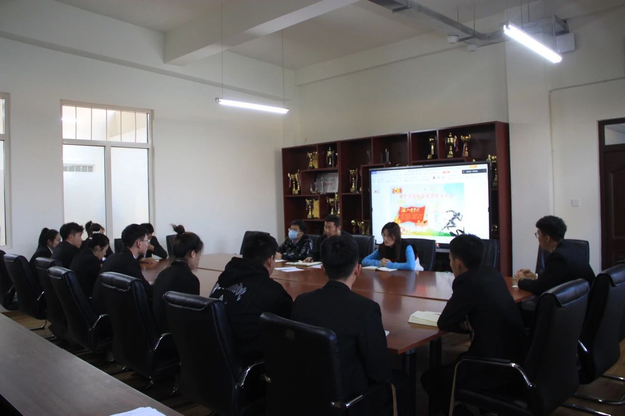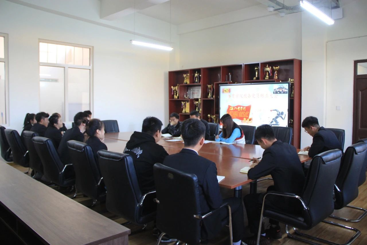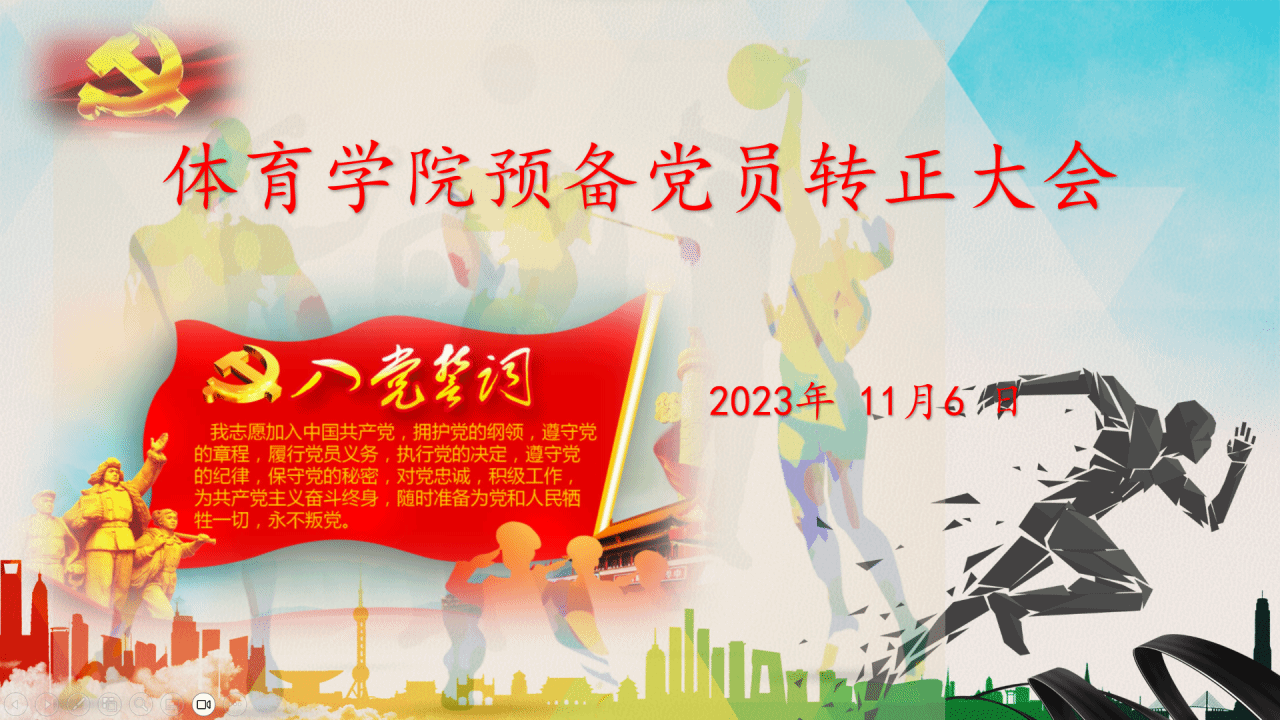 2023年11月6日下午体育学院学生党支部在9223召开了体育学院2023年秋季学期预备党员转正大会。此次会议采取了线上线下相结合的模式。辅导员潘昊鑫、辅导员李仁隆和全体学生党员出席本次大会。会议由我院副处级辅导员张玉丹主持。