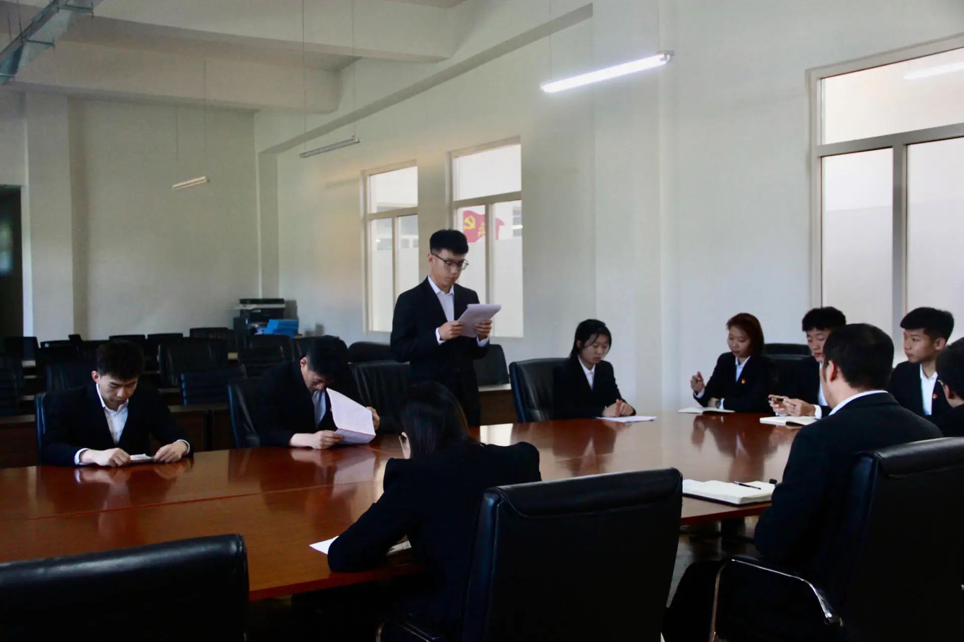 辅导员潘昊鑫按照《中国共产党发展党员工作细则》中关于支部大会讨论接收新党员要求,首先汇报会议主题和报告会议出勤人数及缺席人数。按照程序要求,逐一讨论表决。5名拟发展对象分别汇报了对党的认识、入党动机、个人履历和现实表现。