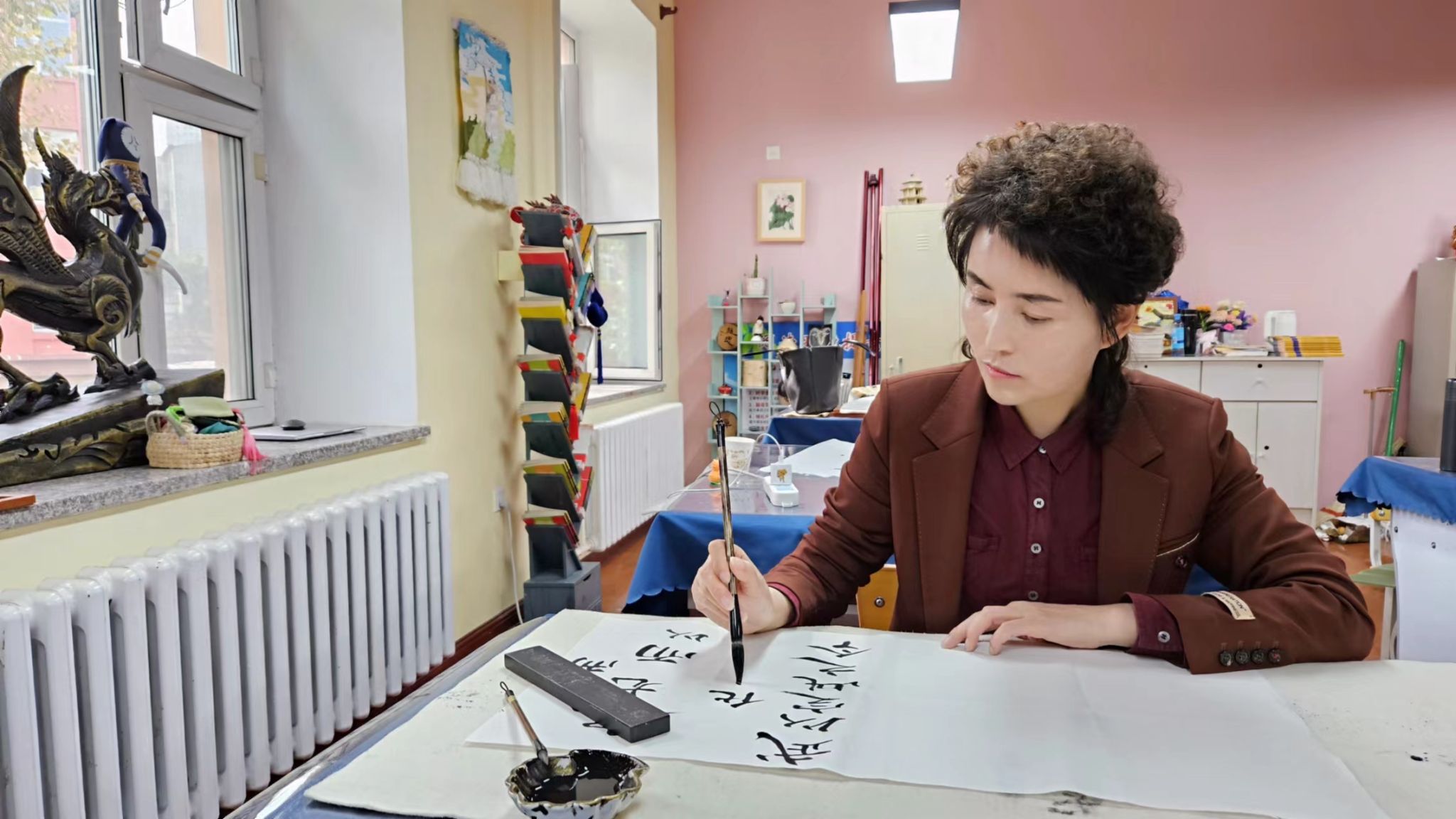 2012年9月,年仅39岁的她以全区笔试面试第一的优异成绩通过校长选拔考试,被组织任命为南岗区中小学生综合实践学校校长。这所学校是由原六十八中学改制而来,她上任之时,正值改制过渡期。面对学校一无所有的窘况,她一边安抚教职工焦灼起伏的心绪,推心置腹,转化上访“专业户”;一边带领平均年龄46岁的教师们,白手起家,自主整修教育局拨付使用的老旧校舍。重重困难在她坚韧不拔、孜孜以求的校园建设中,在她领导有方、落实有效的管理策略下迎刃而解。3年时间里,她带领团队教师踏雪访名师,通宵搞创作、合力建专业。她立足校情结合中国传统文化、黑龙江地域文化、前沿科技文化,提出了“五味课程、幸福师生”的办学理念,带领教师先后开发了农耕、非遗、拓展、科技、冰雪、环保等40余个专业课程,编写十余本专业教材。其中软陶、彩瓷、结艺、布艺等专业教材在全国发行。
