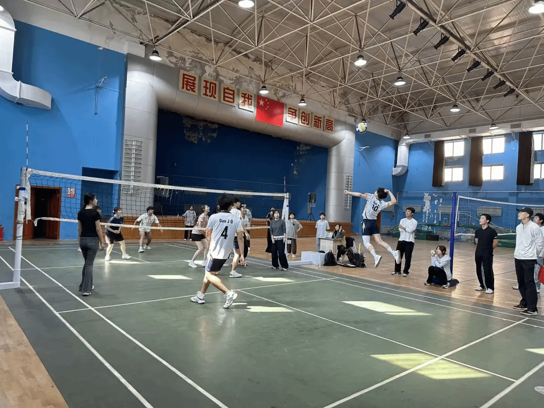 开幕式后,全校各学院代表队迅速投入激烈角逐。赛场上,队员们发球精准、垫球稳健、扣杀有力,每一次跃起与奔跑都凝聚着汗水与斗志;场下,拉拉队的呐喊助威声此起彼伏,传递着团结与支持的力量。无论是进攻时的果断突破,还是防守时的顽强坚守,亦或是团队间的默契配合,各学院学子用热血与激情诠释了“更高、更快、更强”的体育精神,让整个赛场跃动着青春的活力,书写着校园运动的精彩篇章。