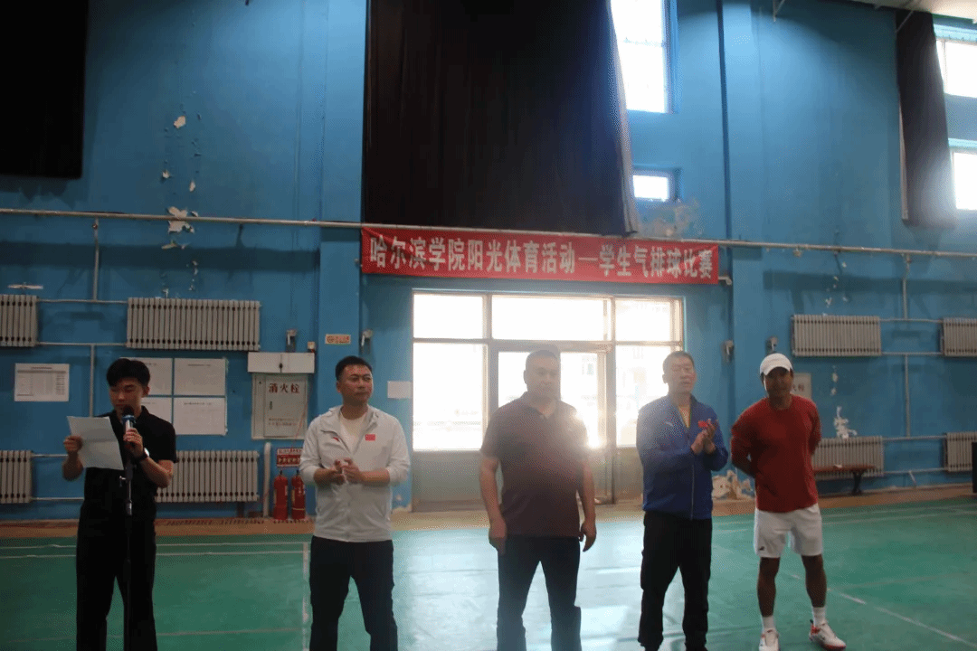 (文/邹浩一、任彦军)为贯彻“全民健身”理念、丰富校园文体生活,哈尔滨学院校园阳光体育活动暨学生气排球赛于9月15日—9月23日举行。体育学院戴显岩院长、任彦军副院长、何宁尔老师和赵友老师出席开幕式,戴显岩院长在致辞中鼓励运动员,“以运动强体魄、以协作促交流”。全校各学院组队参赛,队员活力登场,发球垫球间尽显风采,热血赛事正式开启。