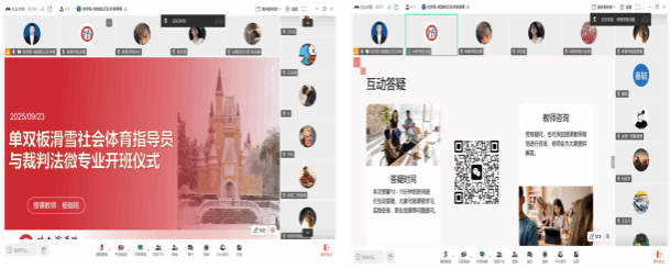 单双板滑雪社会体育指导员与裁判法微专业开班仪式于9月23日,以腾讯会议线上形式举行。体育学院领导班子、骨干教师代表及首批微专业学员齐聚一堂,共同开启冰雪人才培养的全新篇章。开班仪式由杨珈铭教师主持。