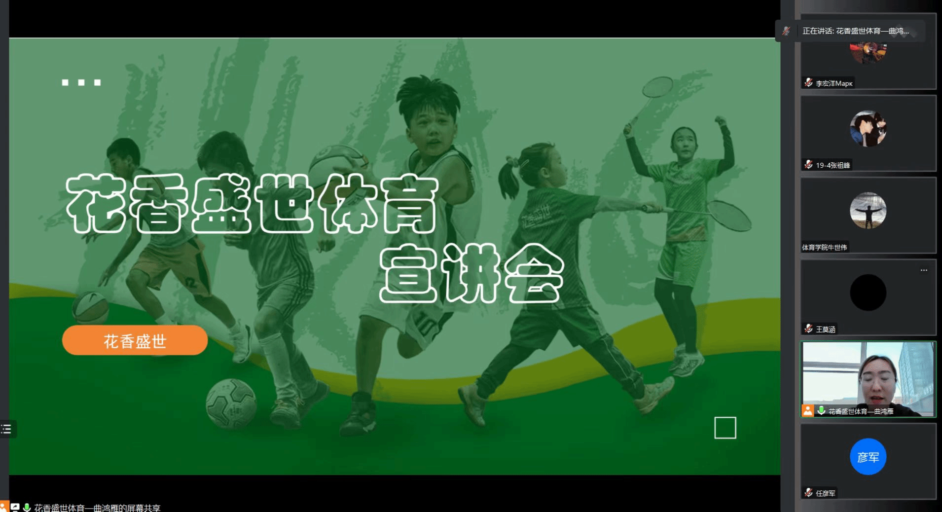 (文/王忠元)适逢就业季,为更好推进后疫情转段后2023届学生就业工作,进一步拓宽就业渠道,同时扎实推进我校与企业产教融合、校企全面合作,进一步拓宽我校专业人才培养、实习实践基地建设。2023年3月27日晚18时,体育学院通过腾讯会议组织“北京花香盛世国际体育文化发展有限公司”召开专场企业宣讲会,体育学院副院长任彦军、辅导员王忠元,体育学院2019级、2020级全体学生通过线上线下方式参加会议。