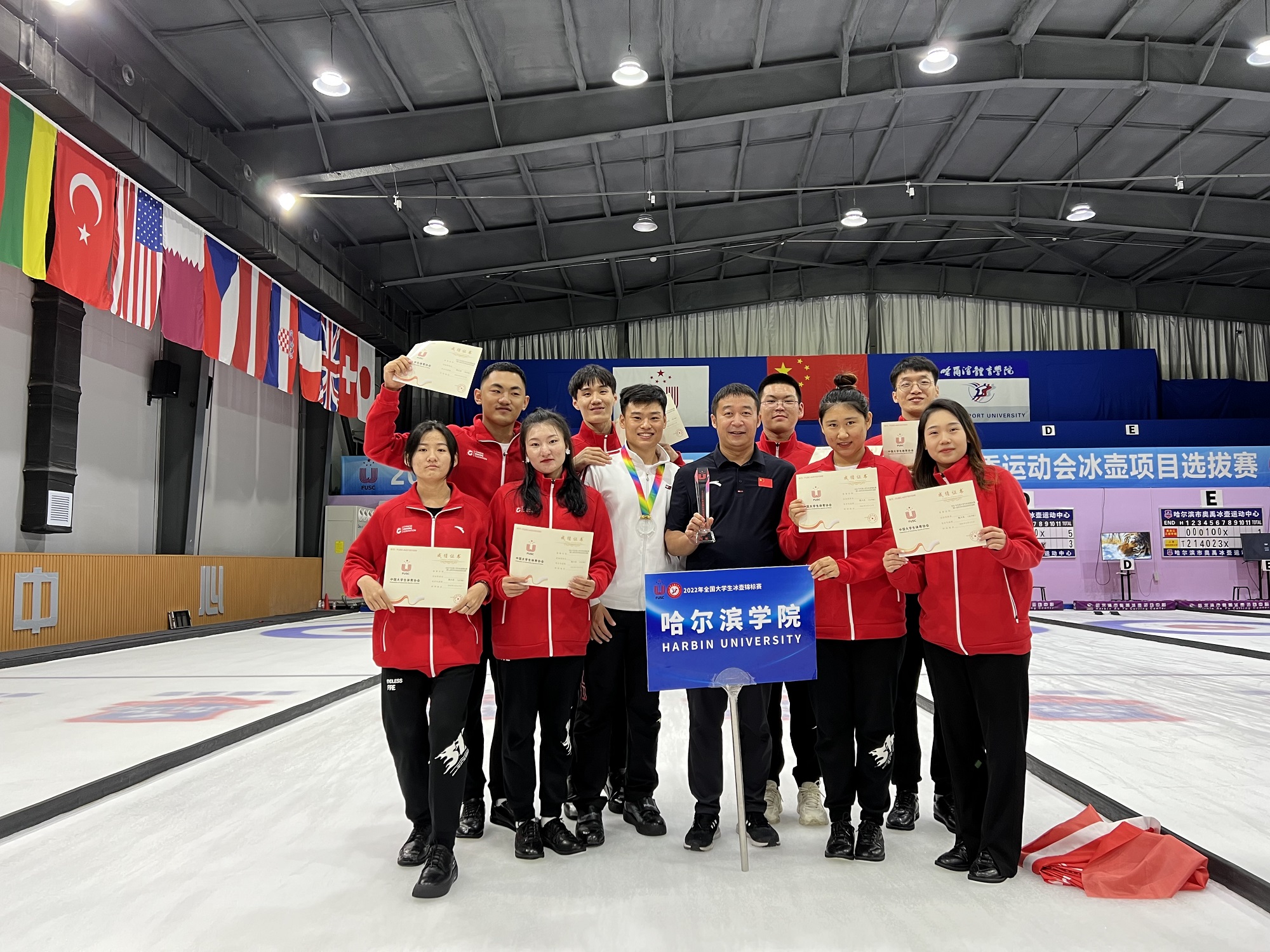 本次比赛分为男团、女团两个比赛项目,由来自全国14所高校的23支代表队参赛。在体育学院领导的大力支持下,刚刚组建一个月的哈尔滨学院冰壶男、女代表队在教练员张玉丹老师的带领下,参加了全部项目的比赛,与来自全国的100余名选手同台竞技。比赛中,我校运动员沉着应对,奋勇拼搏,展现了良好的精神风貌和专业水准。先后战胜老牌劲旅上海对外经贸大学、天津体育学院、北京工业大学和赛会新军黑龙江大学代表队,最终获得男团第五名、女团第六名的好成绩。