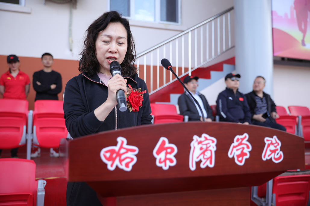 5月28日下午16:00分举行了闭幕式,本次赛会裁判长体育学院院长李大威宣布比赛成绩;校工会陈威主席致闭幕词,她讲到:这次运动会是成功的、圆满的、团结向上的一次体育盛会,共有700余名运动员参加了16项田径项目的比赛,3人次打破校记录。赛场上运动员们发扬顽强拼搏的精神,场上、场下形成良好的互动,体育运动气氛浓厚,展示了我校学生体育运动英姿和青春阳光积极向上的精神风貌。哈尔滨学院各项工作一定会取得大的跨越、新的进展。希望全校师生乘阳光体育之风,每天坚持锻炼,将健身运动融入生活、工作和学习中,为我校“十四五”规划良好开局奠定基础。